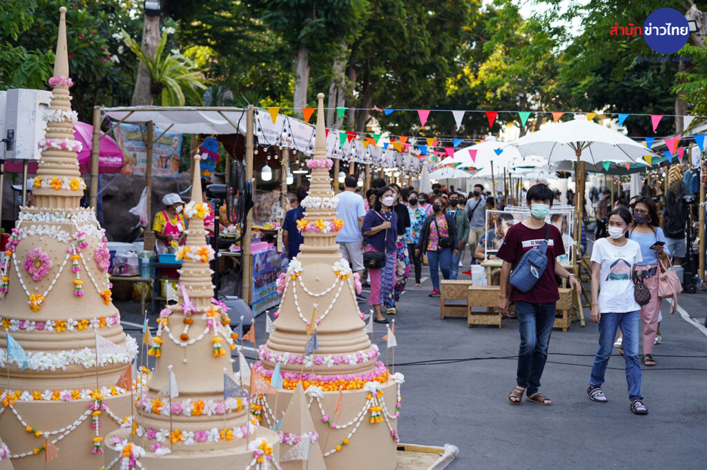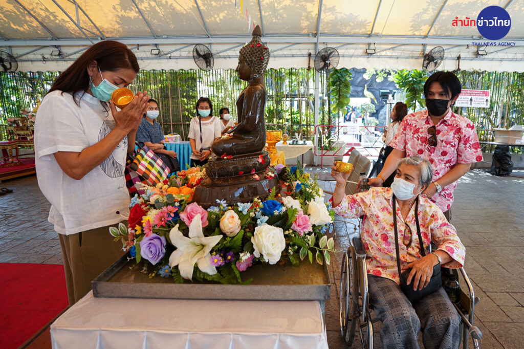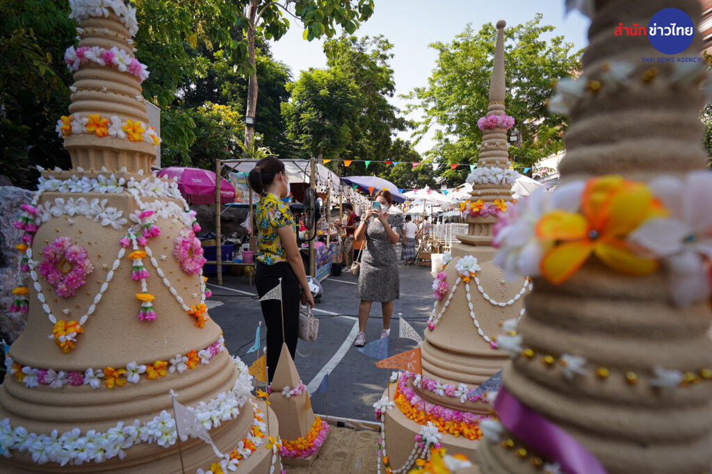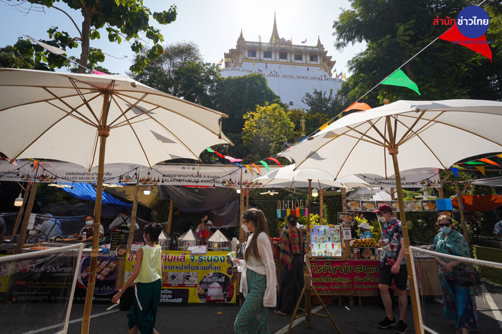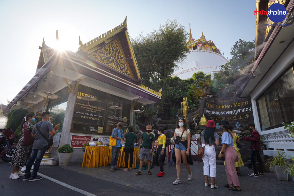 วัดสระเกศราชวรมหาวิหาร หรือ วัดภูเขาทอง หนึ่งในพระอารามหลวงที่จัดงานเย็นทั่วหล้ามหาสงกรานต์ ซึ่งวันนี้จัดเป็นวันสุดท้าย ยังคงมีประชาชนเดินทางมาไหว้พระ ทำบุญ สรงน้ำพระ และขึ้นไปสักการะพระบรมสารีริกธาตุบนภูเขาทองอย่างต่อเนื่อง รวมทั้งมีการแสดงทางวัฒนธรรม และการละเล่นพื้นบ้านของเด็กไทยในอดีต มีการจำหน่ายอาหารและสินค้าทางวัฒนธรรม ซึ่งถือว่าช่วยกระตุ้นเศรษฐกิจค้าขายได้เป็นอย่างดี