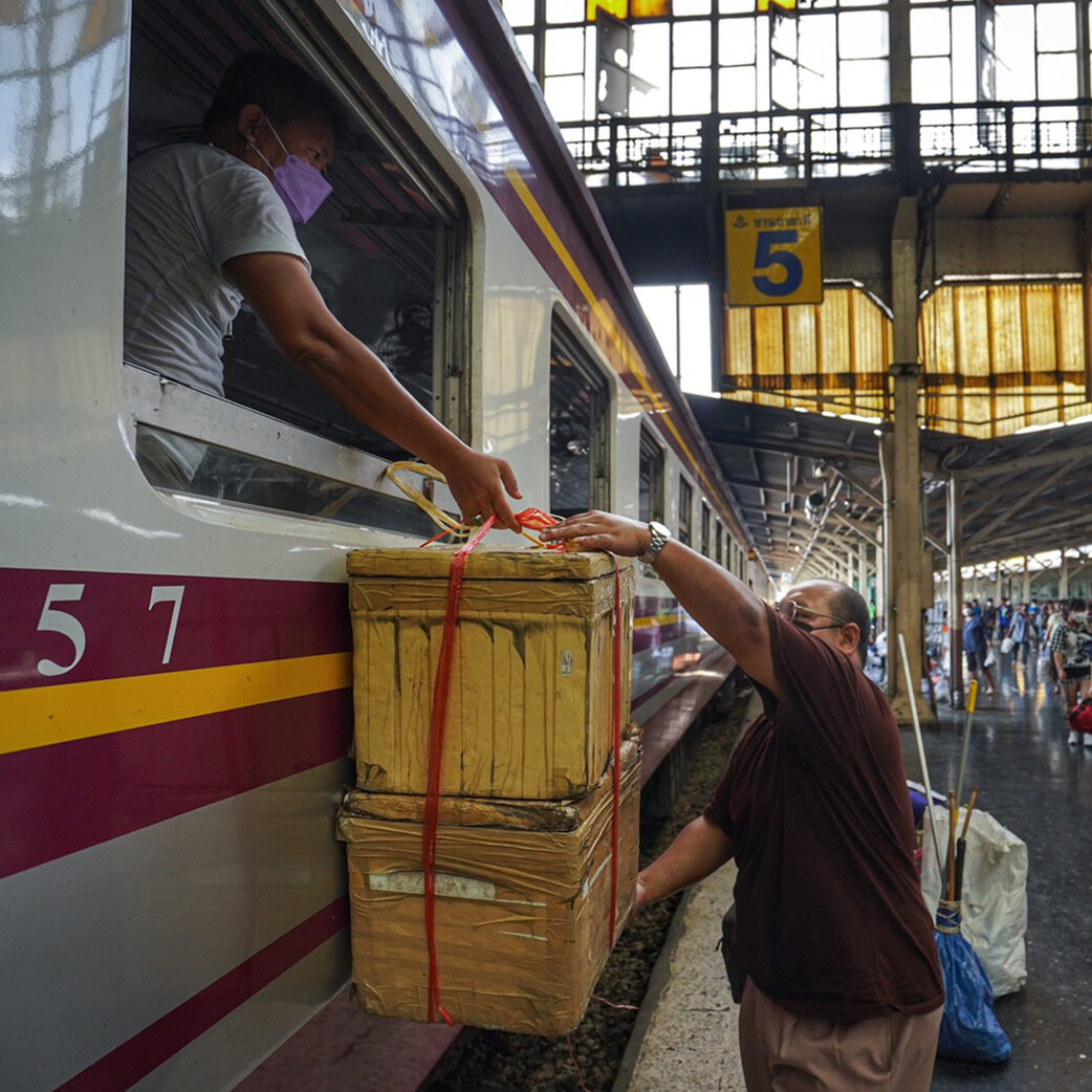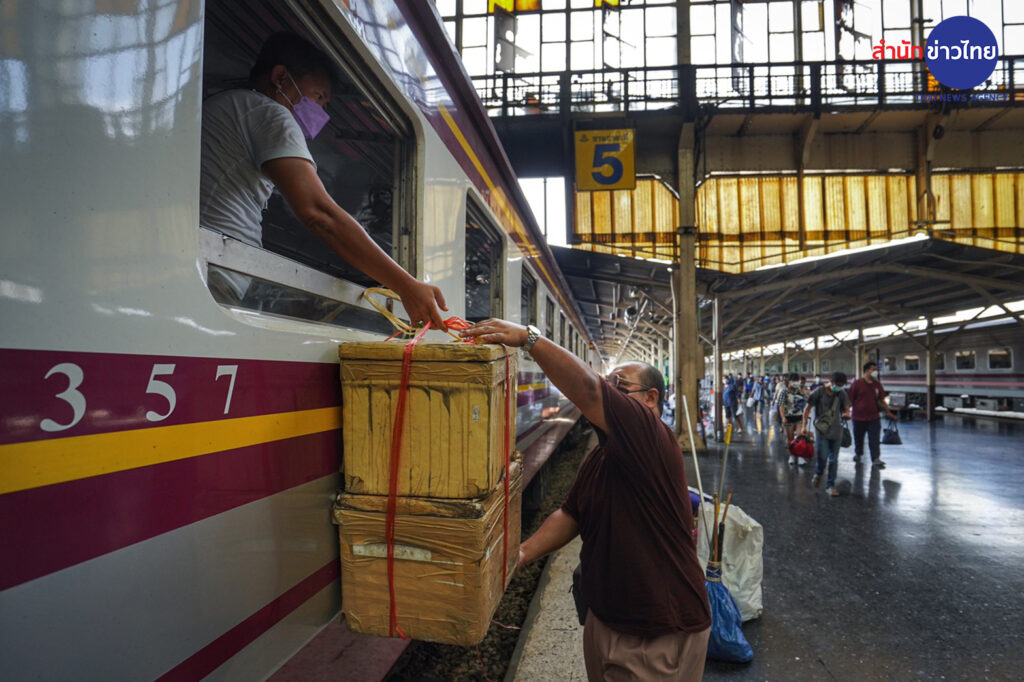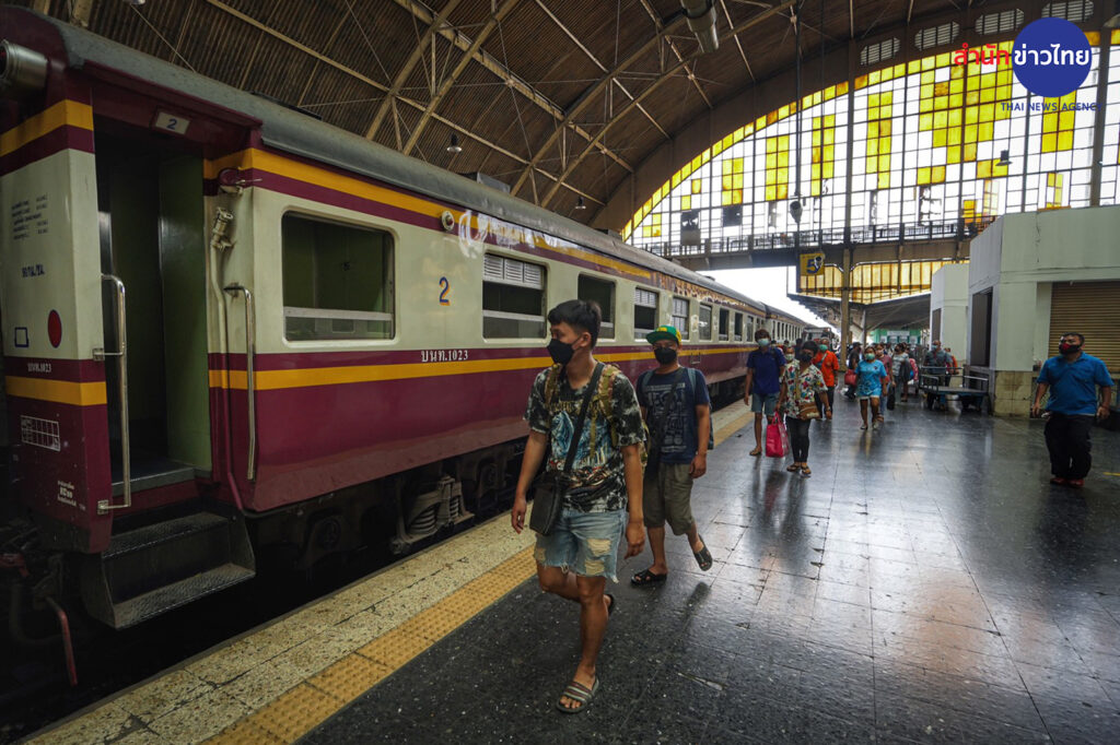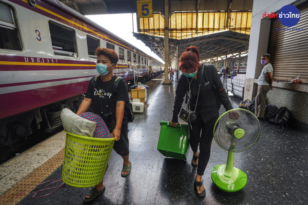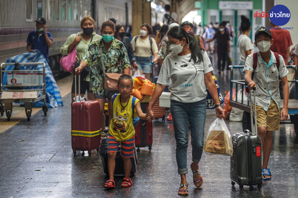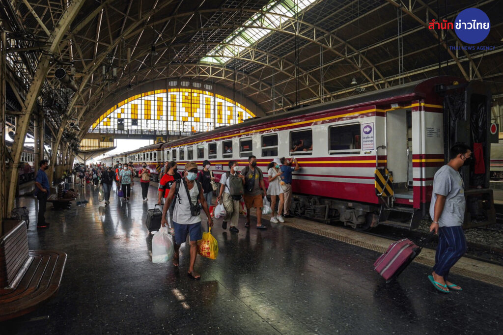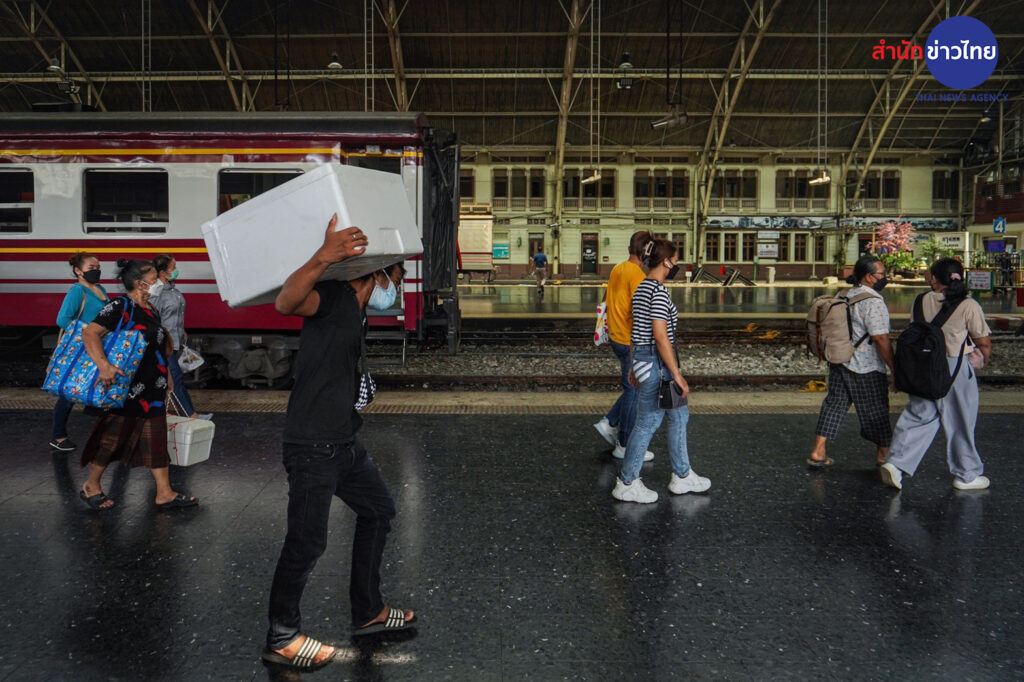 17 เม.ย.2565 บรรยากาศที่สถานีรถไฟหัวลำโพง ตลอดทั้งวันยังคงมีประชาชนทยอยเดินทางกลับเข้ากรุงเทพฯ อย่างต่อเนื่อง หลังจากกลับไปเยี่ยมบ้านในช่วงเทศกาลสงกรานต์ ต่างขนสิ่งของที่จำเป็น และอาหาร ที่นำมาจากต่างจังหวัด กลับมาด้วย เพื่อช่วยลดค่าครองชีพในเมืองกรุง