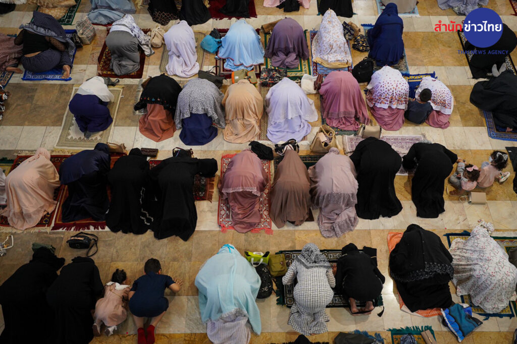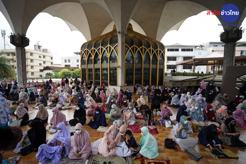 ชาวไทยมุสลิมร่วมละหมาด วันอีฎิ้ลฟิตริ ที่มูลนิธิศูนย์กลางอิสลามแห่งประเทศไทย