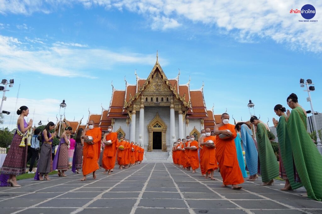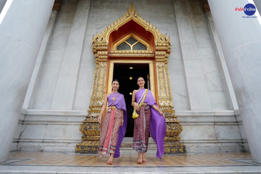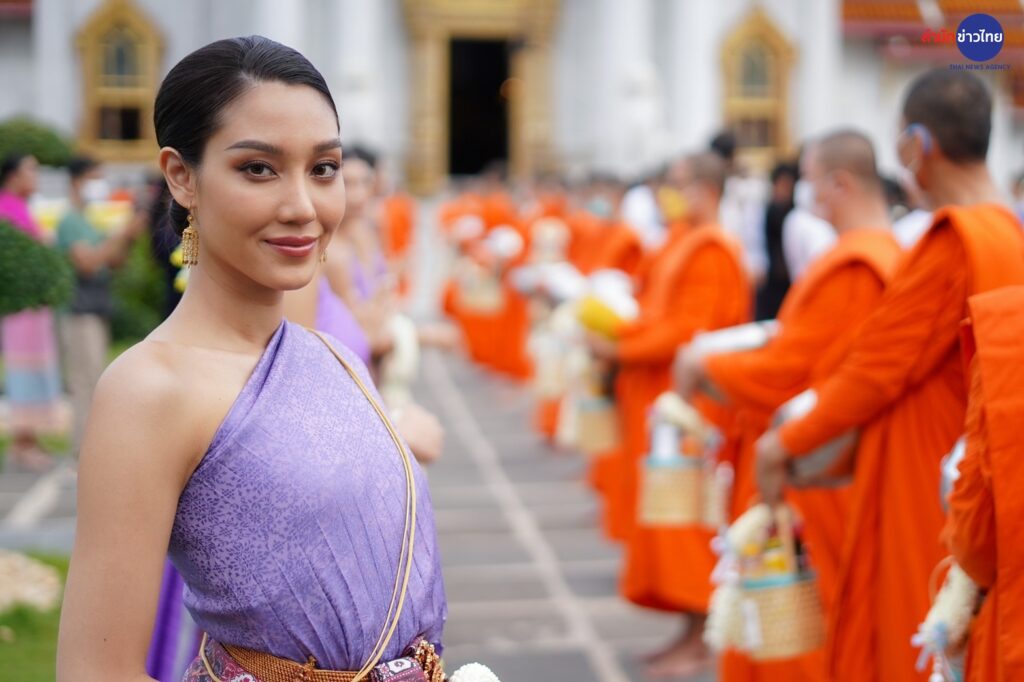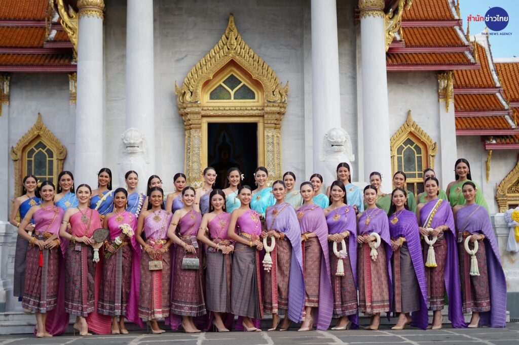 อิ่มอก อิ่มใจ พร้อมอิ่มบุญไปกับ 30 สาวงาม Miss Universe Thailand 2022 ห่มสไบในชุดไทยประจำชาติเข้าร่วมกิจกรรม “ผ้าไทยทันสมัยใส่ไปทำบุญ” กราบนมัสการพระภิกษุสงฆ์รับบิณฑบาตจำนวน 30 รูป พร้อมรับพรเพื่อความเป็นสิริมงคล ณ ลานหน้าพระอุโบสถ วัดเบญจมบพิตรดุสิตวนาราราชวรวิหาร เขตดุสิต กรุงเทพมหานคร ก่อนจะเข้าสู่โค้งสุดท้ายในการประกวด #MUT2022