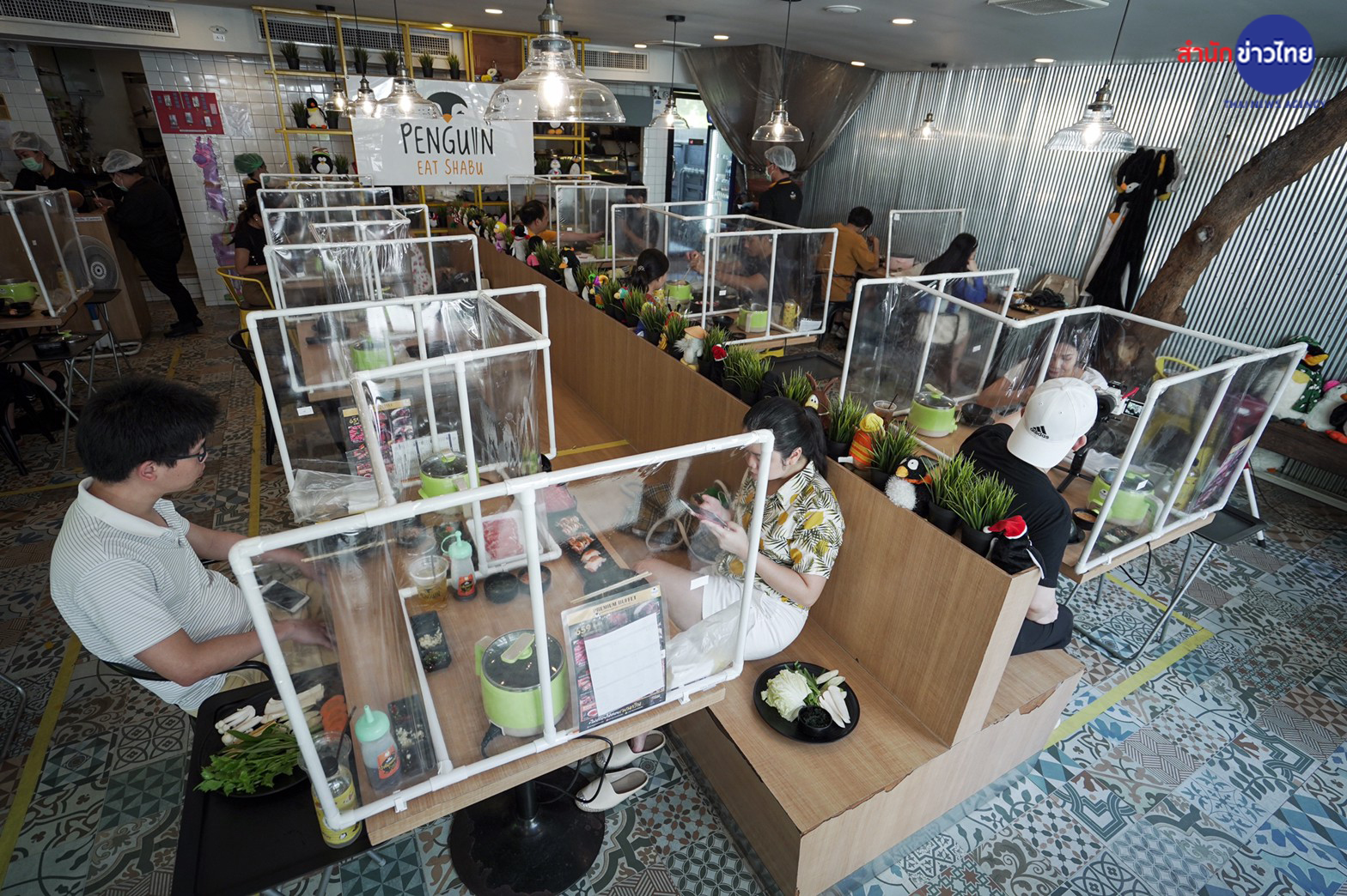 ร้านชาบูเริ่มเปิดร้าน สร้างฉากกั้นป้องกันโควิด-19 หม้อใครหม้อมัน