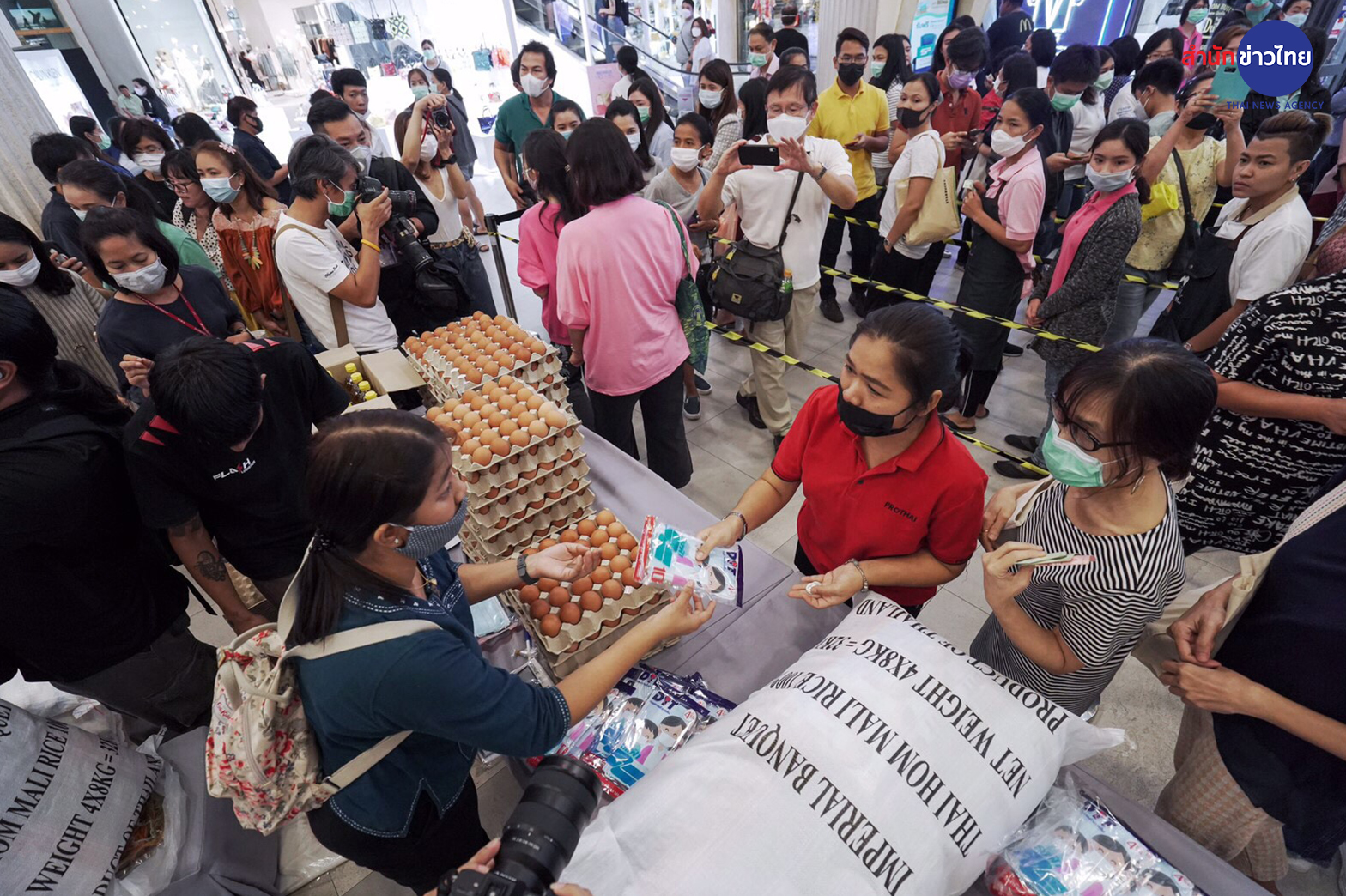 ประชาชนจำนวนมากแห่ซื้อหน้ากากอนามัยผ่านรถโมบายธงฟ้า