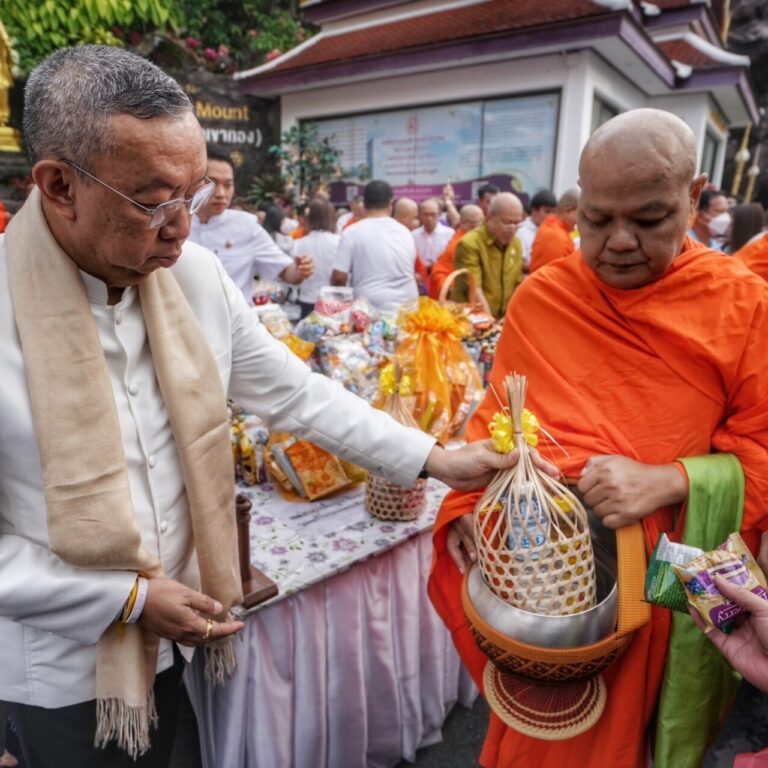 พุทธศาสนิกชนร่วมตักบาตรเทโวพระสงฆ์ 99 รูป