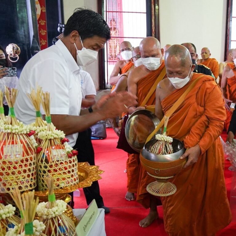 สวมชุดไทยห่มสไบ ไปทำบุญ