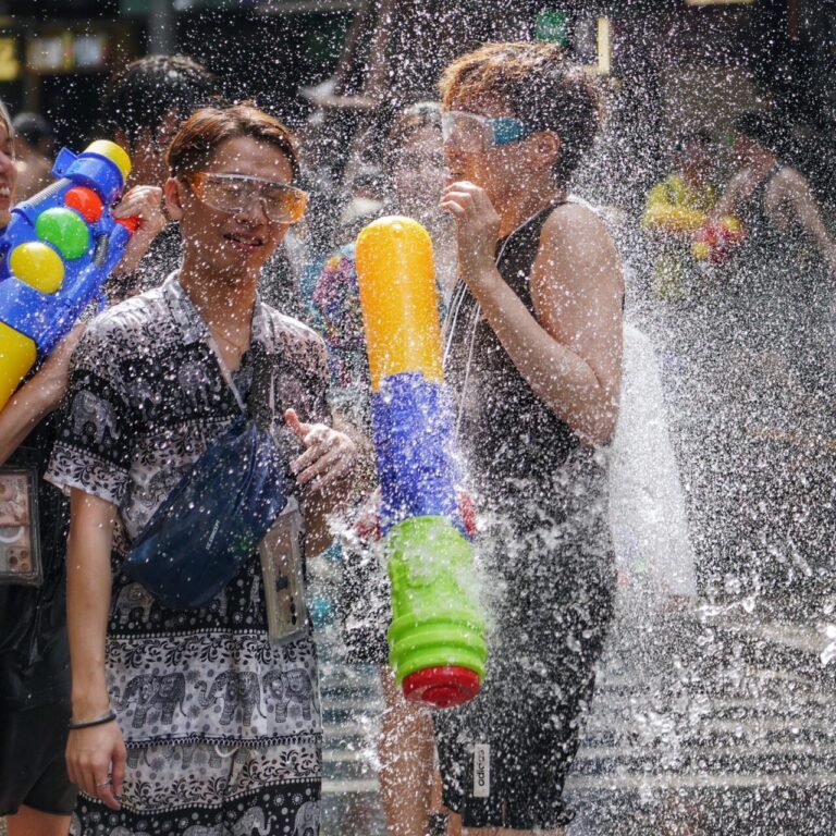 สีลมชุ่มฉ่ำ นักท่องเที่ยวชาวไทยและต่างชาติ เล่นน้ำสงกรานต์ วันแรก