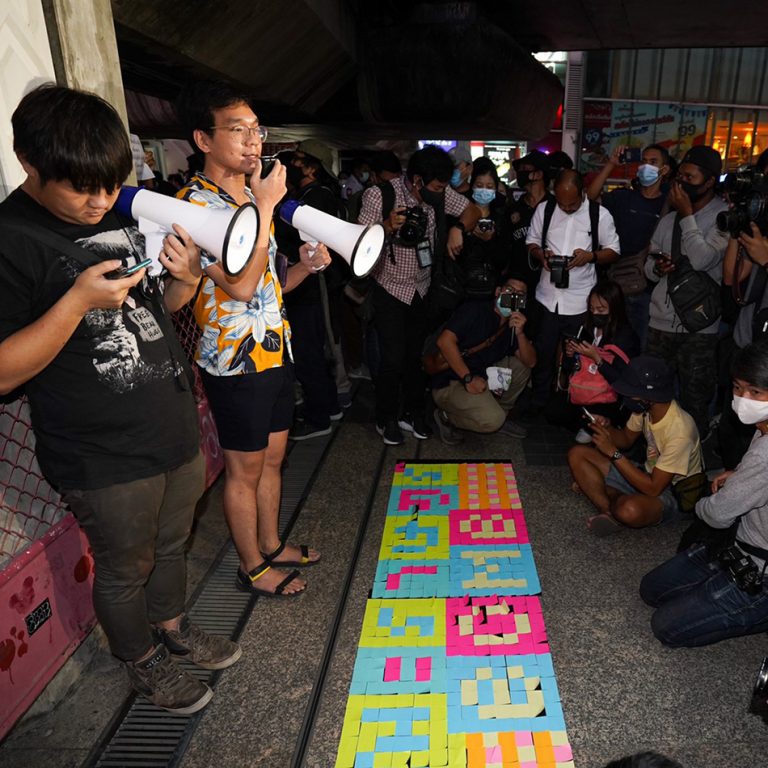 ชุมนุมที่สกายวอล์ก BTS อนุสาวรีย์ฯ