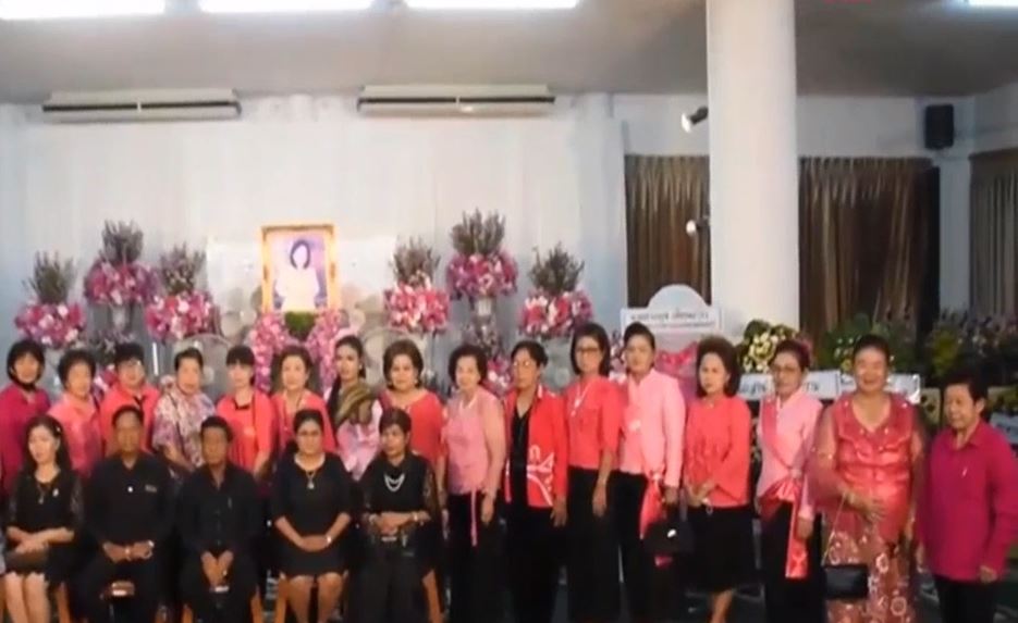 นอกจากนี้ บรรดาเพื่อนๆของผู้ตาย และแขกที่มาร่วมงานต่างสวมใส่ชุดสีชมพูมาร่วมในงาน โดยนางสาวนงนภัส บุตรสาวผู้ตายกล่าวว่า มารดาตนเกิดวันอังคาร และชอบสีชมพู เป็นคนมีเพื่อนฝูงมาก ชอบเต้นรำ และสนุกสนาน จึงขอความร่วมมือบรรดาเพื่อนๆของแม่ ใส่ชุดสีชมพูมาร่วมงาน เพราะแม่ได้สั่งไว้ก่อนเสียชีวิตว่าไม่ต้องการให้บรรยากาศโศกเศร้า จึงดำเนินการตามที่แม่สั่งเสียไว้ สำหรับวัสดุอุปกรณ์ และหรีดที่นำมาจัดงานในวันนี้ หลังเสร็จงานก็จะนำไปบริจาคให้แก่วัด และโรงพยาบาลในจังหวัดสิงห์บุรีทั้งหมด เพื่ออุทิศส่วนกุศลแก่แม่ของตนต่อไป.-สำนักข่าวไทย