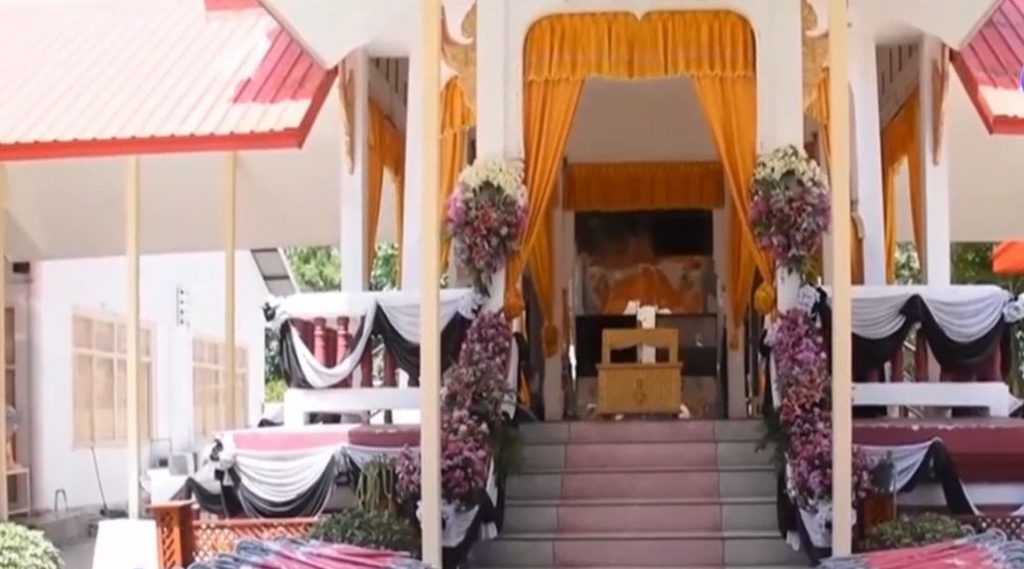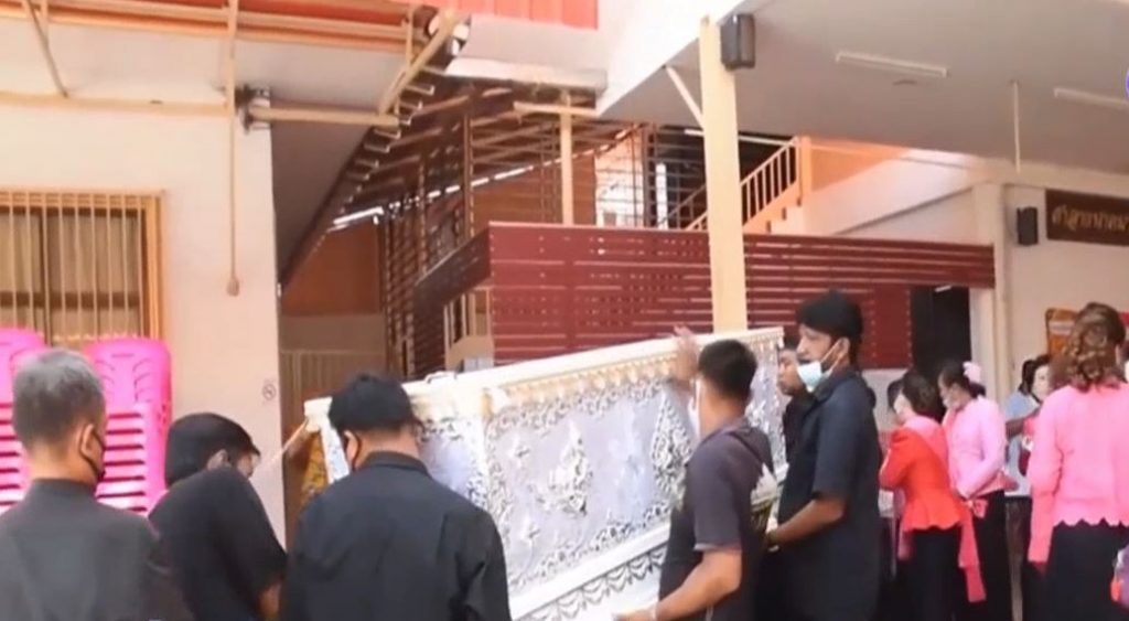 สิงห์บุรี 31 ก.ค.-ที่ฌาปณกิจ วัดโพธิ์แก้วนพคุณ จังหวัดสิงห์บุรี มีพิธีฌาปณกิจนางจริน ทองจีน ที่เสียชีวิตเพราะป่วย ในวัย 68 ปี โดยมีสามีผู้ตายและบุตรสาว ร่วมกันเป็นเจ้าภาพประกอบพิธีในงานจัดสถานที่ เน้นสีชมพูเป็นหลัก ไม่ว่าจะเป็นอาสนสงฆ์ ตาลปัตร ดอกไม้ในพิธีที่ประดับในงาน ดอกไม้จันทร์ ของชำร่วย ไม่เว้นแม้แต่ภาชนะที่ใส่อาหารบางชนิด ก็เป็นสีชมพูหมดทั้งงาน