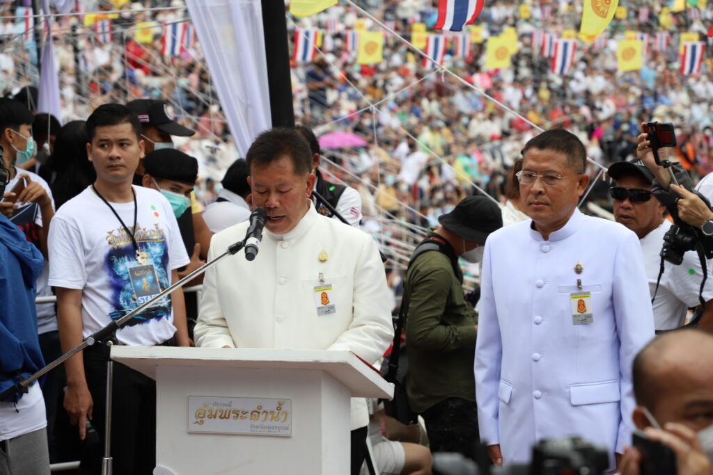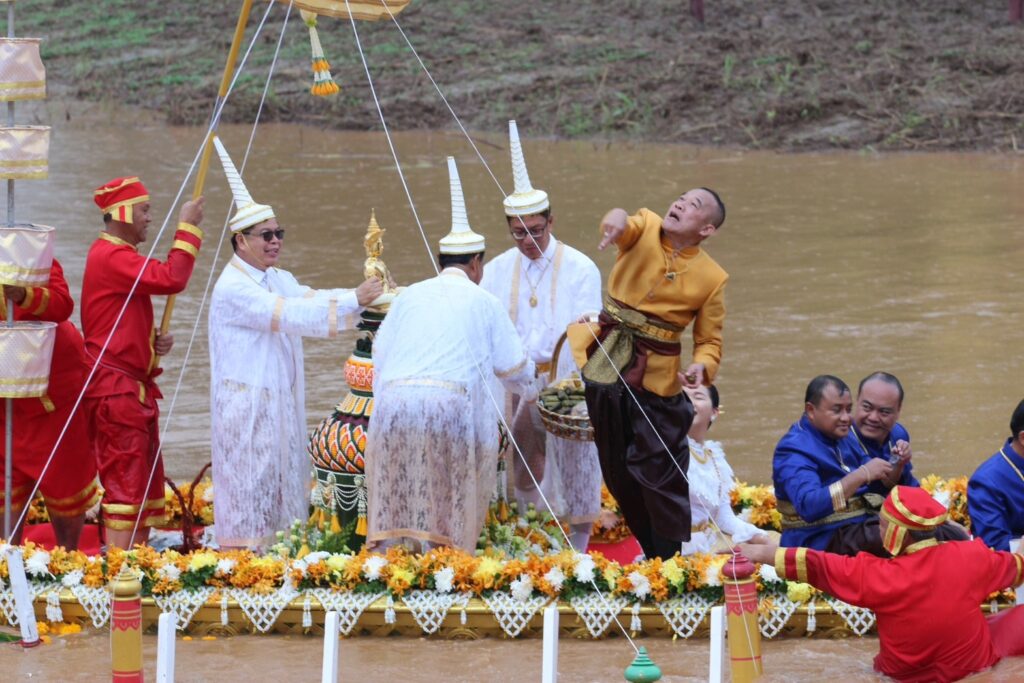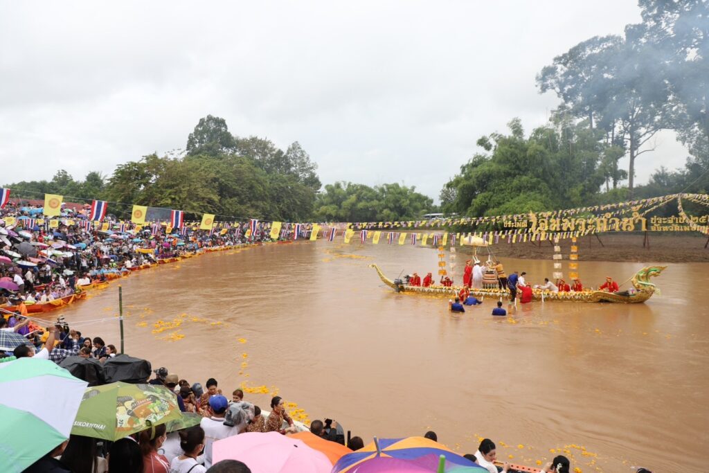 โอกาสนี้ นายกฤษณ์ คงเมือง ผู้ว่าราชการจังหวัดเพชรบูรณ์ ได้อัญเชิญพระพุทธมหาธรรมราชา ขึ้นประดิษฐานบนเรือ จากวัดไตรภูมิมายังแม่น้ำป่าสัก และแห่องค์พระพุทธมหาธรรมราชาล่องไปตามสายน้ำ ถึงท่าน้ำวัดโบสถ์ชนะมาร เพื่อประกอบพิธีอุ้มพระดำน้ำที่ปฏิบัติสืบทอดมานาน และเชื่อกันว่าเป็นพิธีกรรมศักดิ์สิทธิ์อันจะนำความสุข ความสงบร่มเย็นมาสู่เมือง ส่งผลให้ฝนฟ้าตกต้องตามฤดูกาล พืชผลการเกษตรอุดมสมบูรณ์และทำให้ชาวเพชรบูรณ์มีความเจริญรุ่งเรือง