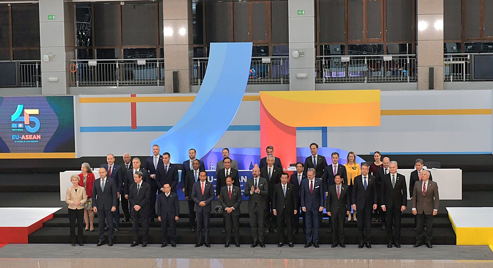 “เพ็ญพร พิพัฒโนทัย” ผู้สื่อข่าวสำนักข่าวไทย ติดตามภารกิจพล.อ.ประยุทธ์ จันทร์โอชา นายกรัฐมนตรีและรัฐมนตรีว่าการกระทรวงกลาโหม ร่วมการประชุมสุดยอดอาเซียน-สหภาพยุโรป(ASEAN – EU Commemorative Summit) สมัยพิเศษ เพื่อฉลองวาระครบรอบ 45 ปี ความสัมพันธ์อาเซียน-สหภาพยุโรป ที่กรุงบรัสเซลส์ ราชอาณาจักรเบลเยียม ระหว่างวันที่ 12 – 15 ธันวาคม 2565 รายงานว่า วานนี้(14 ธ.ค.) เวลา 14.45 น. ตามเวลาท้องถิ่น ซึ่งช้ากว่าประเทศไทย 6 ชั่วโมง ณ อาคาร Europa นายกรัฐมนตรี ร่วมการประชุมสุดยอดอาเซียน – สหภาพยุโรป สมัยพิเศษ เพื่อฉลองวาระครบรอบ 45 ปี ความสัมพันธ์อาเซียน – สหภาพยุโรป พร้อมกับผู้นำหรือผู้แทนอาเซียน 9 ประเทศ และยุโรปอีก 27 ประเทศ
