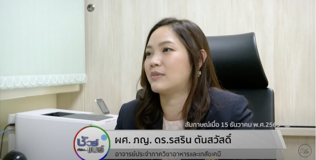 ตรวจสอบกับ : ผศ. ภญ. ดร.รสริน ตันสวัสดิ์ อาจารย์ประจำภาควิชาอาหารและเภสัชเคมี คณะเภสัชศาสตร์ จุฬาลงกรณ์มหาวิทยาลัย