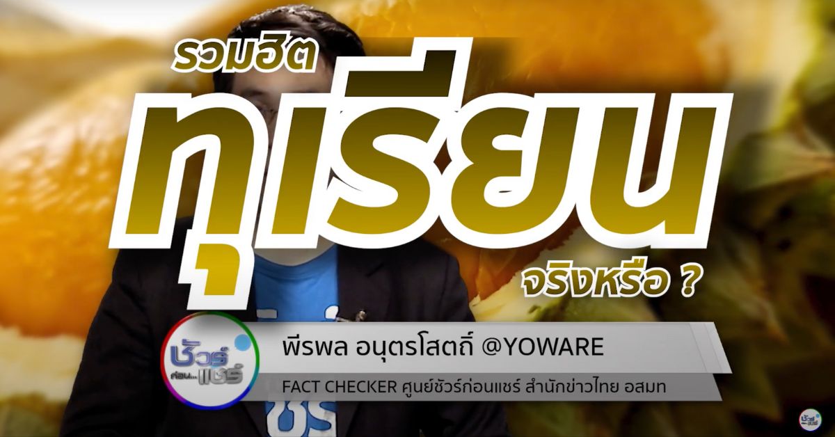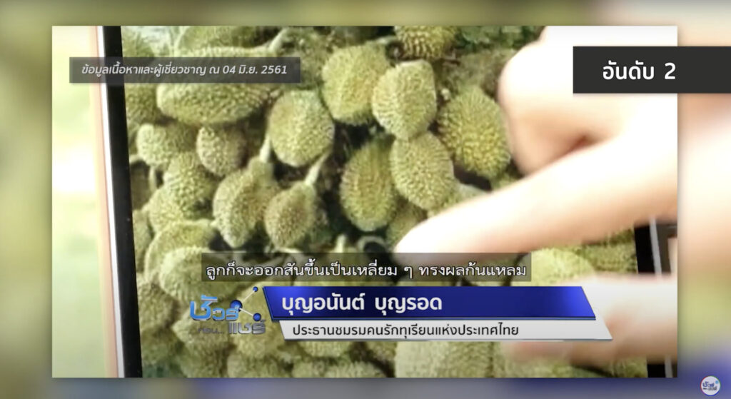 เรื่องนี้ตรวจสอบข้อเท็จจริงกับ : คุณบุญอนันต์ บุญรอด ประธานชมรมคนรักทุเรียนแห่งประเทศไทย