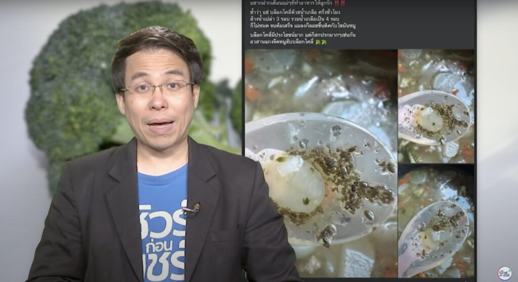 6 มีนาคม 2566 – จากกรณีมีการแชร์ภาพและคำเตือนว่าแม่ ๆ ที่ทำอาหารให้ลูกรัก ผักบรอกโคลี ที่แม้จะแช่น้ำเกลือ ล้างน้ำเปล่าอีก 3 รอบ แมลงก็ยังไม่หมด ต้มเสร็จลอยขึ้นมาเพียบ