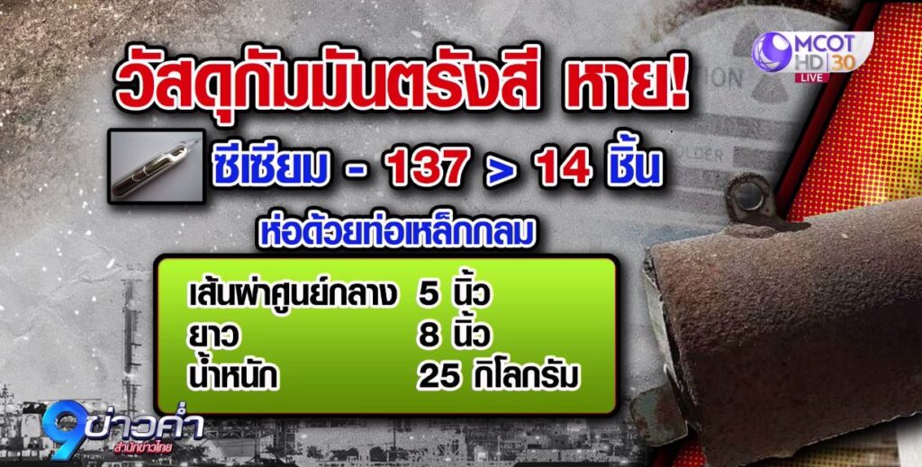 วัสดุกัมมันตรังสีซีเซียม-137 ที่สูญหาย เป็นวัสดุที่มีตะกั่วปกป้องอยู่ชั้นในและห่อหุ้มด้วยเหล็ก โดยวัสดุกัมมันตรังสีจะอยู่ในชั้นในสุด หากยังอยู่ในสภาพเดิมจะไม่ส่งผลกระทบต่อสุขภาพของประชาชนและสิ่งแวดล้อม