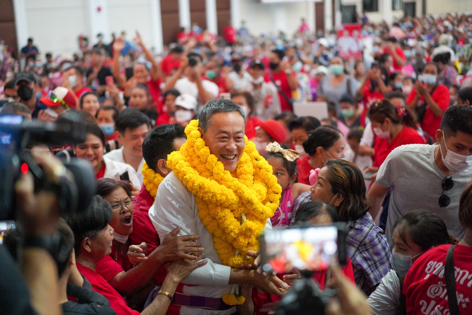 จากนั้น นายเศรษฐา ปราศรัยว่า พรรคเพื่อไทย ตั้งแต่สมัยพรรคไทยรักไทย พรรคพลังประชาชน คิดใหญ่ ทำเป็น และทำได้มาโดยตลอด นโยบายที่ผ่านมาในอดีต แม้จะล่วงเลยมา 20 กว่าปีแล้ว ทั้งนโยบาย 30 บาทรักษาทุกโรค จะยกระดับโดยใช้บัตรประชาชนเพียงใบเดียว รักษาที่ไหนก็ได้ นอกจากนี้ นโยบายของรัฐบาลพรรคเพื่อไทยก็จะมีนโยบายเพื่อมากระตุ้นเศรษฐกิจ มีนโยบายค่าแรงขั้นต่ำ 600 บาท/วัน จบปริญญาตรี 25,000 บาท/เดือน