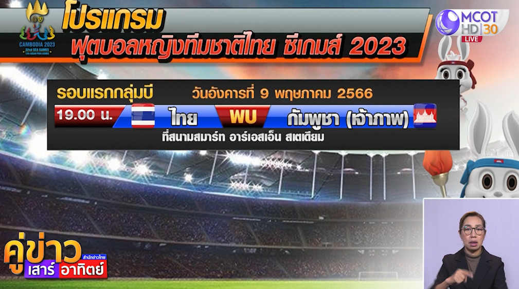 โปรแกรมนัดต่อไป ทีมชาติไทย พบกับ กัมพูชา (เจ้าภาพ) ที่ สมาร์ต อาร์เอสเอ็น สเตเดียม ในวันที่ 9 พฤษภาคม เวลา 19.00 น.
