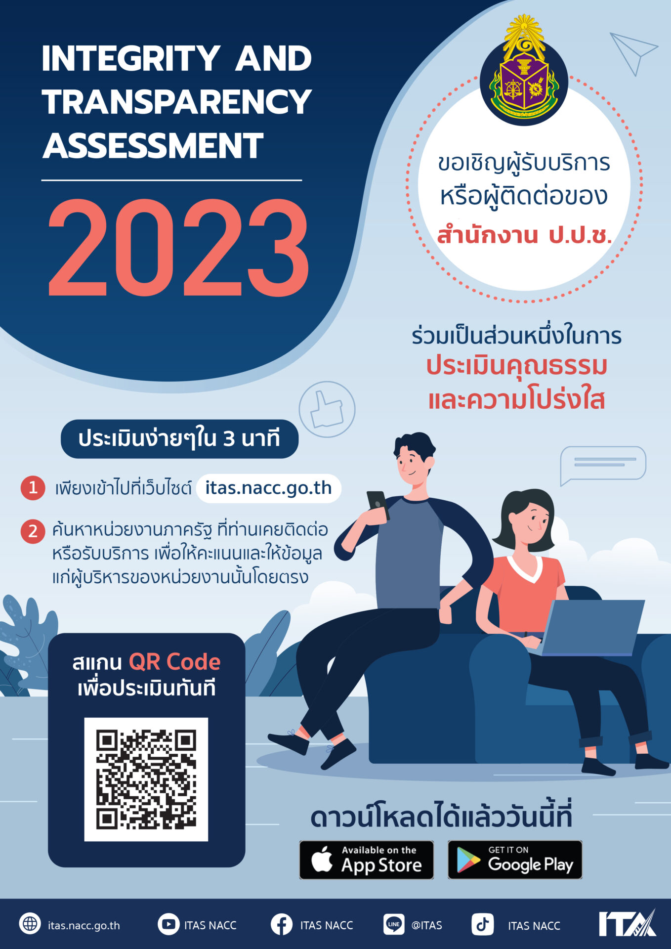 ป.ป.ช. ขอเชิญชวนประชาชน ร่วมเป็นส่วนหนึ่งในการประเมินคุณธรรมและความโปร่งใสในการดำเนินงานของสำนักงาน ป.ป.ช. (Integrity and Transparency Assessment: ITA) ประจำปีงบประมาณ พ.ศ. 2566