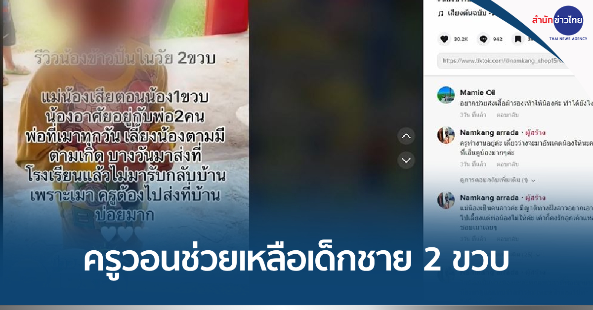 เด็กชายที่ครูขอความช่วยเหลือคือ น้องข้าวปั้น อายุ 2 ขวบ ครูให้ข้อมูลว่าเด็กถูกนำมาฝากไว้ตั้งแต่อายุประมาณ 1 ขวบ ขณะนั้นแม่ของเด็กยังมีชีวิตอยู่ ต่อมาแม่เด็กเสียชีวิตเมื่อกลางปีที่ผ่านมา เด็กจึงอยู่กับพ่อ 2 คน ที่ผ่านมาพ่อของเด็กไม่มีอาชีพแน่นอน บ่อยครั้งมีอาการเมา ปล่อยให้ลูกชายอยู่คนเดียว และที่ตนเองลงคลิปไปนั้นเพียงแค่อยากให้ผู้ใจบุญส่งสิ่งของจำเป็นกับชีวิตของเด็กมาช่วยเหลือ เช่น เสื้อผ้า รองเท้า ชุดนักเรียน
