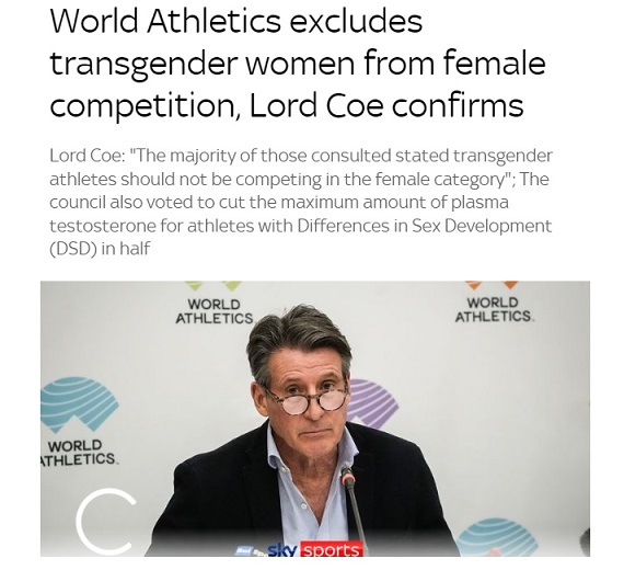กรีฑาโลกเป็นหนึ่งในหลายองค์กรกีฬาระดับนานาชาติที่ออกนโยบายจำกัดการแข่งขันกีฬาของนักกีฬาสตรีข้ามเพศกับนักกีฬาหญิง โดยปีที่แล้ว กีฬาทางน้ำโลกหรือ World Aquatics และสหภาพจักรยานระหว่างประเทศหรือ UCI ต่างกำหนดให้นักกีฬาสตรีข้ามเพศต้องมีระดับฮอร์โมนเทสโทสเตอโรนไม่เกิน 2.5 nmol/L ก่อนอนุญาตให้แข่งกับนักกีฬาหญิงเช่นเดียวกัน ส่วนรักบี้โลกหรือ World Rugby ประกาศห้ามไม่ให้นักกีฬาสตรีข้ามเพศแข่งรักบี้กับนักกีฬาหญิงโดยสิ้นเชิง โดยอ้างประเด็นการได้เปรียบทางสรีระและการป้องกันการบาดเจ็บจากการแข่งขัน