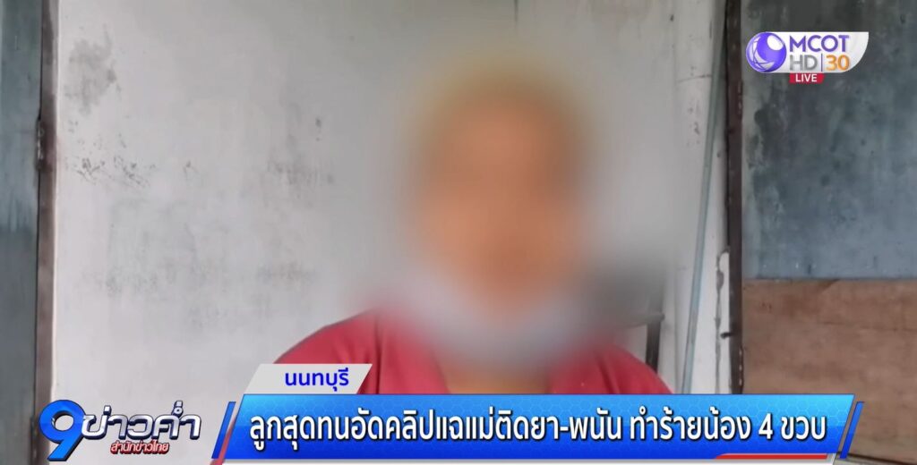 นนทบุรี 27 มิ.ย. – รวบแล้ว แม่คลั่ง ยอมรับติดยา แต่ไม่เคยตีลูก หลังลูกคนโตอายุ 17 ปี สุดทน อัดคลิปแฉ ขอความช่วยเหลือ แม่อาละวาดด่าทอ ทำร้ายลูก 4 ขวบ แถมติดปั่นสลอต-ติดยา