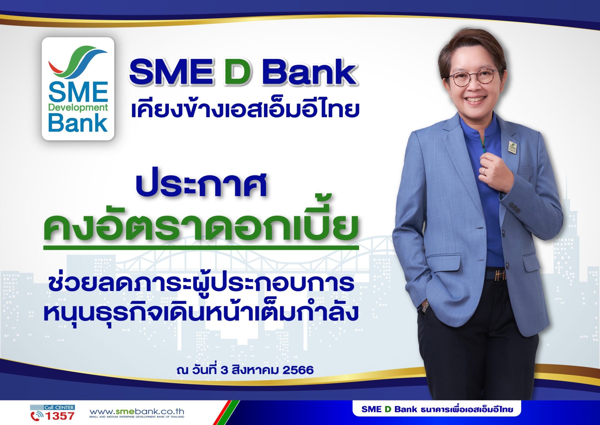 กรุงเทพฯ 3 ส.ค.- SME D Bank ประกาศคงอัตราดอกเบี้ย ช่วยลดผลกระทบ แบ่งเบาภาระการเงิน เตรียมสินเชื่อใหม่ ให้กับเอสเอ็มอีไทย ปลอดชำระเงินต้นนาน 24 เดือน