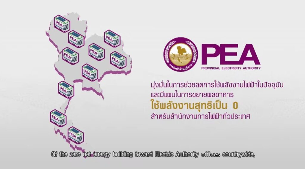PEA ดำเนินงานพัฒนาเทคโนโลยีอาคารที่ใช้พลังงานสุทธิเป็นศูนย์ (Net Zero Energy Building) โดยปรับปรุงอาคารปฏิบัติการ (อาคาร D) ของศูนย์ฝึกปฏิบัติการไฟฟ้าแรงสูง กฟภ. อ.นครชัยศรี จ.นครปฐม ให้เป็นอาคารที่ใช้พลังงานสุทธิเป็นศูนย์ (Net Zero Energy Building) เพื่อเป็นต้นแบบและนำไปสู่การสร้างศูนย์การเรียนรู้ด้านอาคารที่ใช้พลังงานสุทธิเป็นศูนย์ให้แก่พนักงาน PEA หน่วยงานต่าง ๆ และบุคคลภายนอกที่สนใจ โดยนำเทคโนโลยีด้านพลังงานทดแทนและเทคโนโลยีด้านการอนุรักษ์พลังงานมาใช้ควบคู่กัน เพื่อให้อาคารมีการใช้พลังงานสุทธิเป็นศูนย์ ซึ่งปัจจุบันอาคารดังกล่าวได้รับรางวัลดีเด่น ด้านอนุรักษ์พลังงาน ประเภทอาคารที่ใช้พลังงานเป็นศูนย์ (Zero Energy Building) สำหรับการประกวด Thailand Energy Awards 2023
