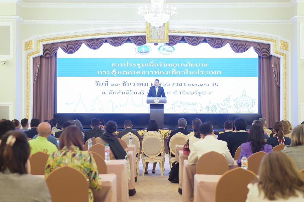 นายเศรษฐา ทวีสิน นายกรัฐมนตรีและรัฐมนตรีว่าการกระทรวงการคลัง เป็นประธานการประชุมมอบนโยบายเพื่อกระตุ้นตลาดการท่องเที่ยวในประเทศ โดยมีน.ส.สุดาวรรณ หวังศุภกิจโกศล รัฐมนตรีว่าการกระทรวงการท่องเที่ยวและกีฬา น.ส.ฐาปนีย์ เกียรติไพบูลย์ ผู้ว่าการการท่องเที่ยวแห่งประเทศไทย และผู้บริหารกระทรวงการท่องเที่ยวเข้าร่วมประชุมรับมอบนโยบาย