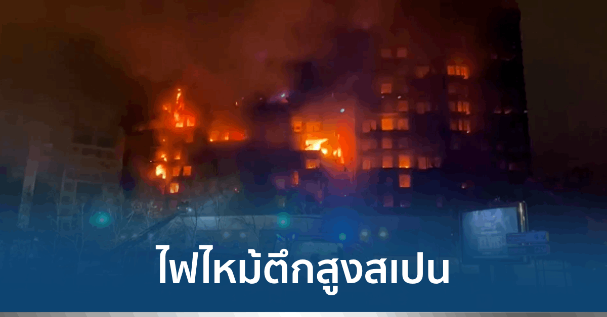 สเปน 23 ก.พ. – เพลิงไหม้อาคารที่พักอาศัยความสูง 14 ชั้น ในเมืองบาเลนเซีย ประเทศสเปน คาดมีผู้อาศัยติดอยู่ภายในหลายคน ขณะที่เจ้าหน้าที่ดับเพลิงพยายามเร่งควบคุมเพลิงที่โหมลุกไหม้อย่างรวดเร็ว