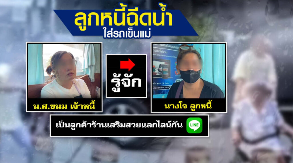 น.ส.ขนม อายุ 41 ปี แม่ค้าขายออนไลน์ นำคลิปไปร้องนายเกียรติคุณ ต้นยาง หรือ สส.โป้ง สส.พรรคก้าวไกล เขต 7 จ.นนทบุรี เพื่อให้ช่วยเหลือ หลังถูกลูกหนี้ นางโจ (นามสมมุติ) เจ้าของร้านเสริมสวยในหมู่บ้านเดียวกัน ด่าทอ และใช้น้ำฉีดน้ำใส่หน้าตนเองและแม่ได้รับบาดเจ็บ มีรอยแดงที่ใบหน้า ซึ่งน้ำดังกล่าวมีกลิ่น ไม่แน่ใจว่ามีสารอันตรายหรืออะไรผสมหรือไม่ เหตุเกิดวันที่ 8 มี.ค.ขณะไปเจรจานัดวันเคลียร์หนี้