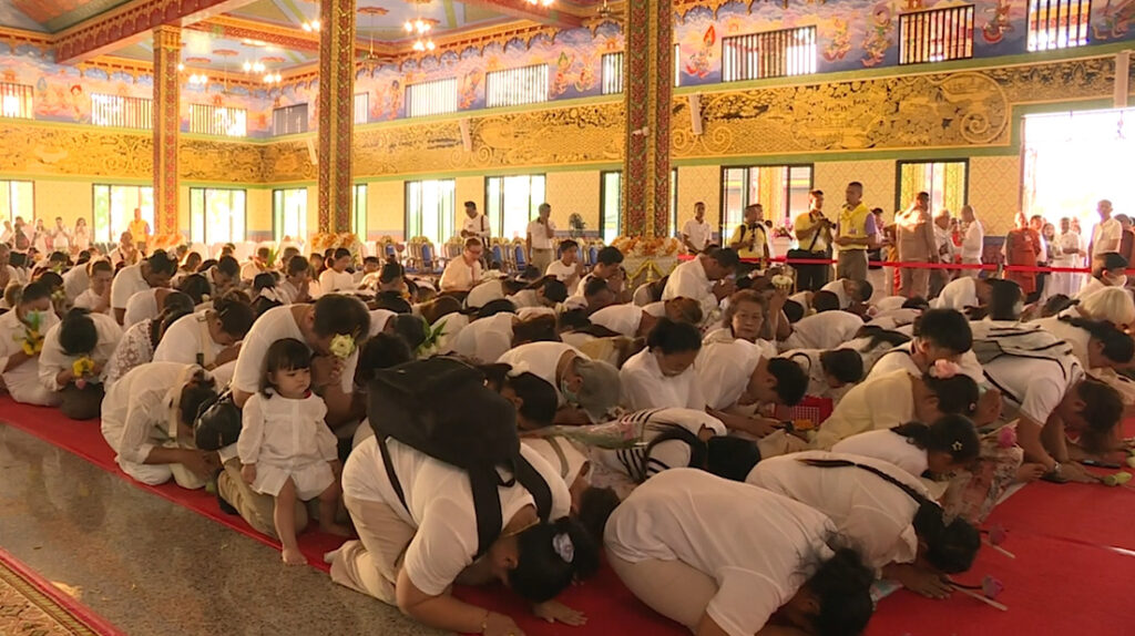 บรรยากาศการเข้ากราบสักการะพระบรมสารีริกธาตุและพระอรหันตธาตุของพระสารีบุตรและพระโมคคัลลานะซึ่งถูกอัญเชิญมาประดิษฐานชั่วคราว ณ ภายในมณฑปวิหาร วัดมหาธาตุวชิรมงคล ตำบลนาเหนือ อำเภออ่าวลึก จังหวัดกระบี่ ช่วงครึ่งวันเช้าที่ผ่านมาแน่นขนัดไปด้วยศาสนิกชน ทั้งจากในพื้นที่จังหวัดกระบี่ และที่เดินทางมาจากทั่วพื้นที่ภาคใต้ ทั้งจากภูเก็ต พังงา นครศรีธรรมราช และสงขลา