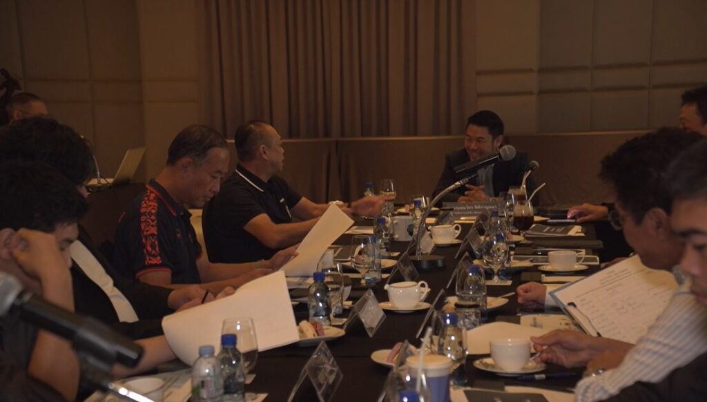 “เสี่ยฟลุ๊ค” ธนวัชร นิติกาญจนา ประธานจัดการแข่งขันฟุตบอลไทยลีก ได้ประชุมร่วมกับตัวแทนสโมสรไทยลีกทั้ง 16 สโมสร รวมทั้ง นายเนวิน ชิดชอบ ประธานบุรีรัมย์ ยูไนเต็ด แชมป์ไทยลีกล่าสุด และ นายสาธิต ปิตุเตชะ ประธานสโมสรระยอง เอฟซี ทีมน้องใหม่ที่เพิ่งเลื่อนชั้นมา ที่โรงแรมพูลแมน ซอยรางน้ำ