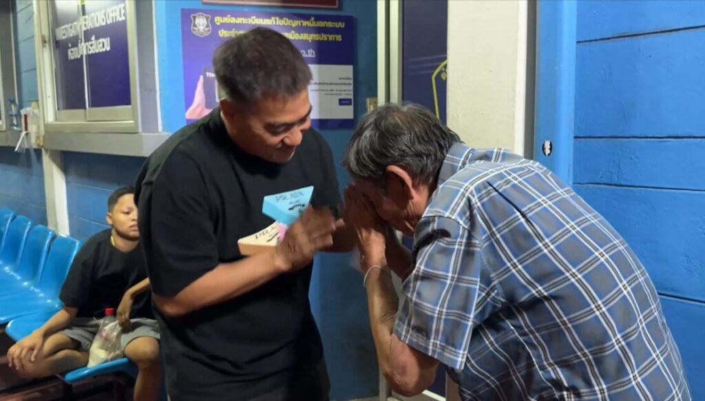 นายโอภาส ผู้เสียหาย ยกมือไหว้ขอบคุณตำรวจ ที่จับกุมตัวผู้ก่อเหตุจนได้รถคืนภายในระยะเวลาไม่ถึง 24 ชั่วโมง พร้อมกับเล่าให้ฟังว่า ผู้โดยสารเรียกรถมาจากแยกวงเวียนใหญ่ บอกว่า จะไปสมุทรปราการ เลยถามว่าไปทางไหนดี เขาบอกว่าไปทางด่วนก็ได้ จึงขึ้นทางด่วนยมราช ซึ่งลุงได้ออกค่าทางด่วนให้ก่อน แล้วมาลงที่ช้างสามเศียร แต่ผู้ต้องหาให้ชิดขวา เข้าคู่ขนาน เข้าซอยวัดบางด้วนนอก พอถึงซอยในวัด มีคนยืนอยู่ที่ข้างโบสถ์ 3 คน เขาก็เลยบอกลุงให้ถอยออกมาให้กลับทางเก่า พอเลี้ยวรถกลับไปทางเก่า 100 เมตร ให้กลับรถอีก แล้วบอกให้จอด จากนั้นผู้ต้องหาได้ต่อยที่หน้า ก่อนจะเปิดประตูถีบลงจากรถ แล้วกระทืบ ก่อนจะขึ้นรถขับหนีไป