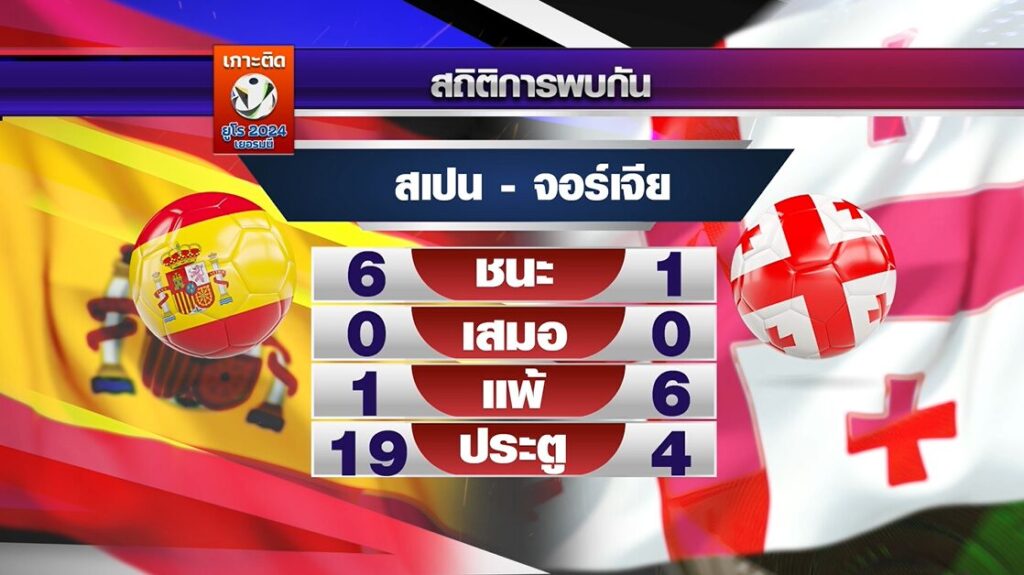 สถิติการพบกัน 7 ครั้ง สเปน ชนะถึง 6 ครั้ง จอร์เจียชนะ 1 ครั้ง โดยสเปน ยิงได้ถึง 19 ประตู ส่วนจอร์เจีย ยิงได้เพียง 4 ประตู .-สำนักข่าวไทย