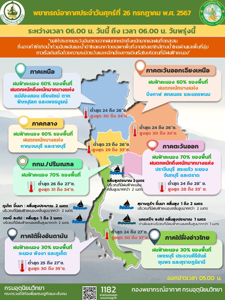 พยากรณ์อากาศรายภาค วันที่ 26 ก.ค.67