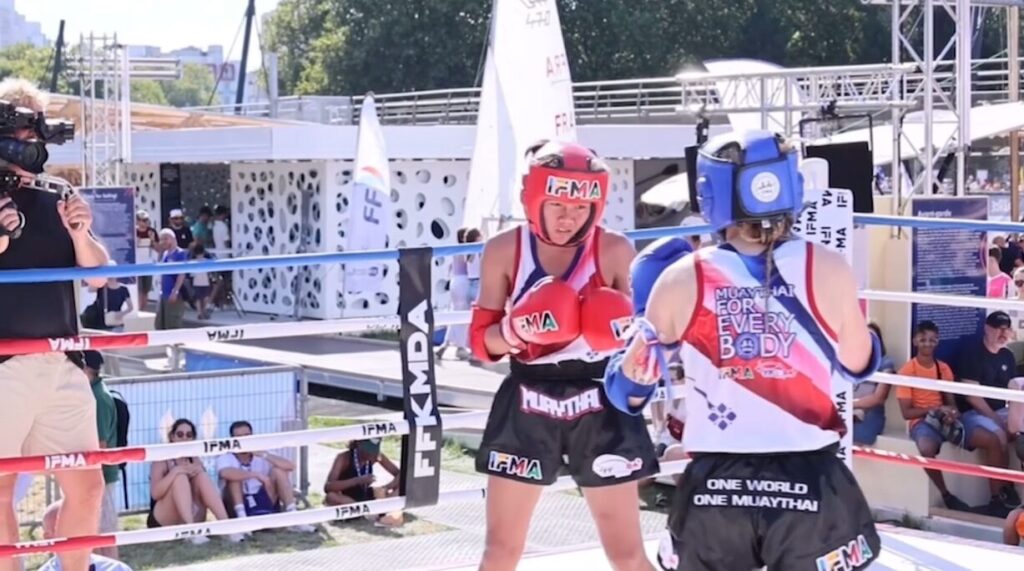 จากนั้นเข้าสู่การแข่งขันมวยไทย 10 คู่ภายใต้กติกาที่ IFMA รับรอง ซึ่งคู่ไฮไลต์ของแฟนมวยชาวไทยคือ รุ่น 48 กก.หญิง “น้องนุ๊ก มกช.ชัยภูมิ” กุลณัฐ อ่อนอก ซึ่งเป็นลูกศิษย์ของ บัวขาว บัญชาเมฆ ดวลกับ ลูเซียร์ คัปปี นักชกสาวชาวเยอรมนี ผลปรากฏว่า เสมอกันไป เช่นเดียวกับ “ไอซ์” ธนวรรณ ทองดวง เสมอกับ ไชนา ตาวาเรส นักชกเจ้าถิ่นไปแบบสุดมัน