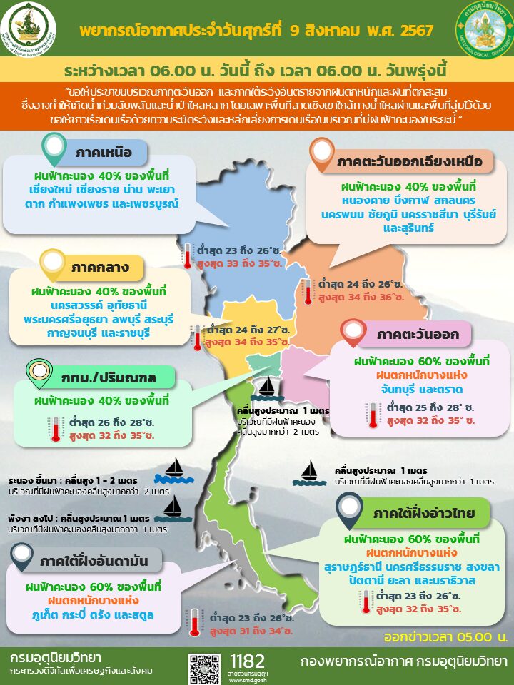 พยากรณ์อากาศรายภาค วันที่ 9 ส.ค.67