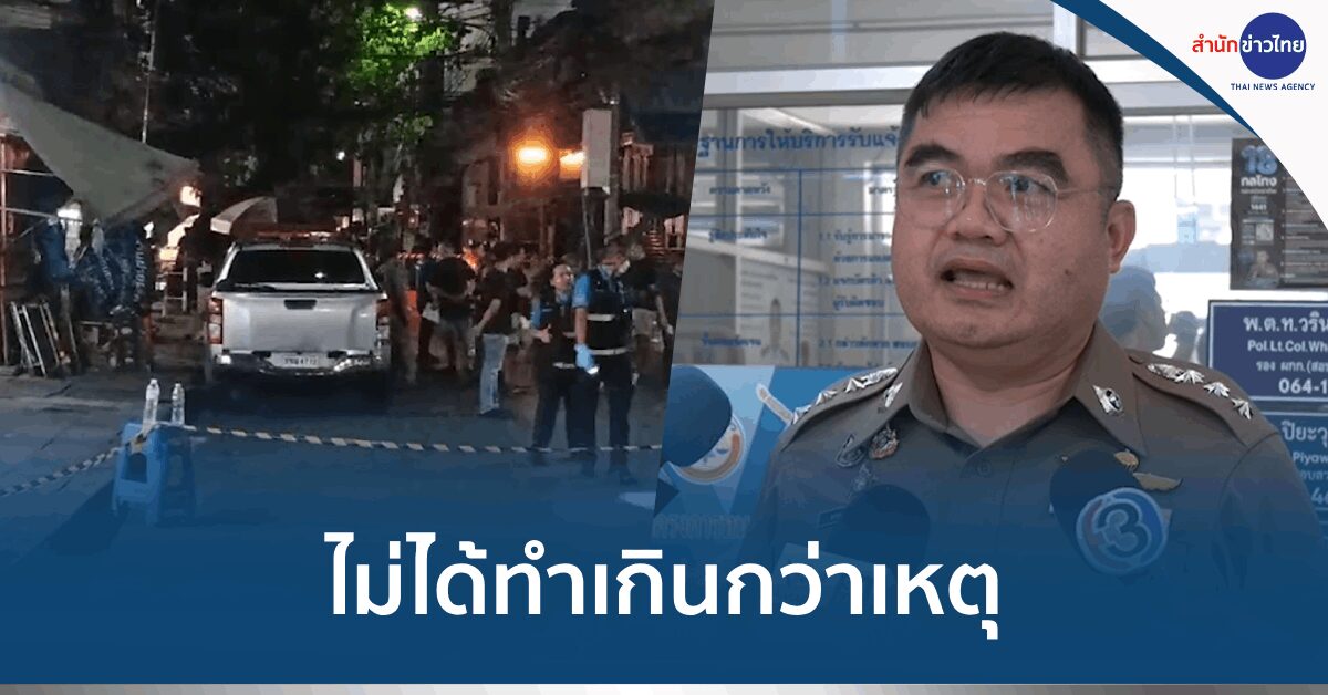 พ.ต.อ.ธรรมศักดิ์ สารบุญ ผู้กำกับการ สน.บางรัก ยืนยันว่าไม่ได้เป็นการกระทำเกินกว่าเหตุ เพราะภาพจากวงจรปิดเห็นชัดเจนว่าผู้เสียชีวิตนำปืนขึ้นมายิงก่อน เจ้าหน้าที่ไม่มีเจตนาวิสามัญ แต่ตอนนั้นต้องพยายามยิงให้หยุด เมื่อผู้เสียชีวิตไม่ยอมหยุด จึงต้องยิงจนกว่าจะหยุด แต่ไปโดนจุดสำคัญจนถึงแก่ชีวิต และไม่ได้ปิดกั้น เพราะตนเป็นคนพาญาติเข้าไปดูศพ แต่ขอความร่วมมือไม่ให้ถ่ายรูป ซึ่งตอนนั้นมีทั้งเจ้าหน้าที่พิสูจน์หลักฐานและแพทย์นิติเวชที่เป็นพยานอยู่