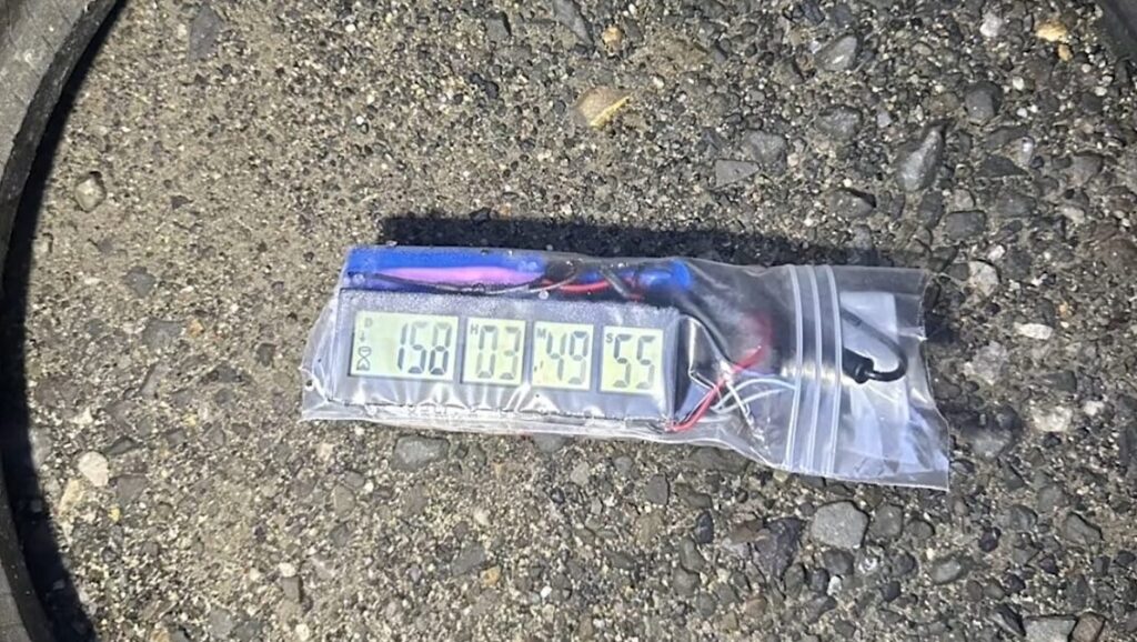 เมื่อช่วงเช้าที่ผ่านมา เจ้าหน้าที่กองพิสูจน์หลักฐาน พร้อมชุดเก็บกู้วัตถุระเบิด หรือ อีโอดี เข้าทำการ ตรวจสอบและเก็บกู้วัตถุต้องสงสัย ลักษณะเป็นนาฬิกาจับเวลาเชื่อมต่อสายไฟกับแผงวงจรไฟฟ้า อัดแน่นอยู่ในถุงพลาสติกใส ขนาด 10 ซม. ยาว 20 ซม.ซุกซ่อนอยู่กับเสื้อผ้า เครื่องนอนซุกซ่อน ในสัมภาระส่วนตัว เจ้าหน้าที่จึงนำวัตถุต้องสงสัยไว้ในวงล้อยางของรถ เพื่อความปลอดภัย และเมื่อตรวจสอบยังพบมีดินระเบิดต่อพ่วงอยู่ด้วย