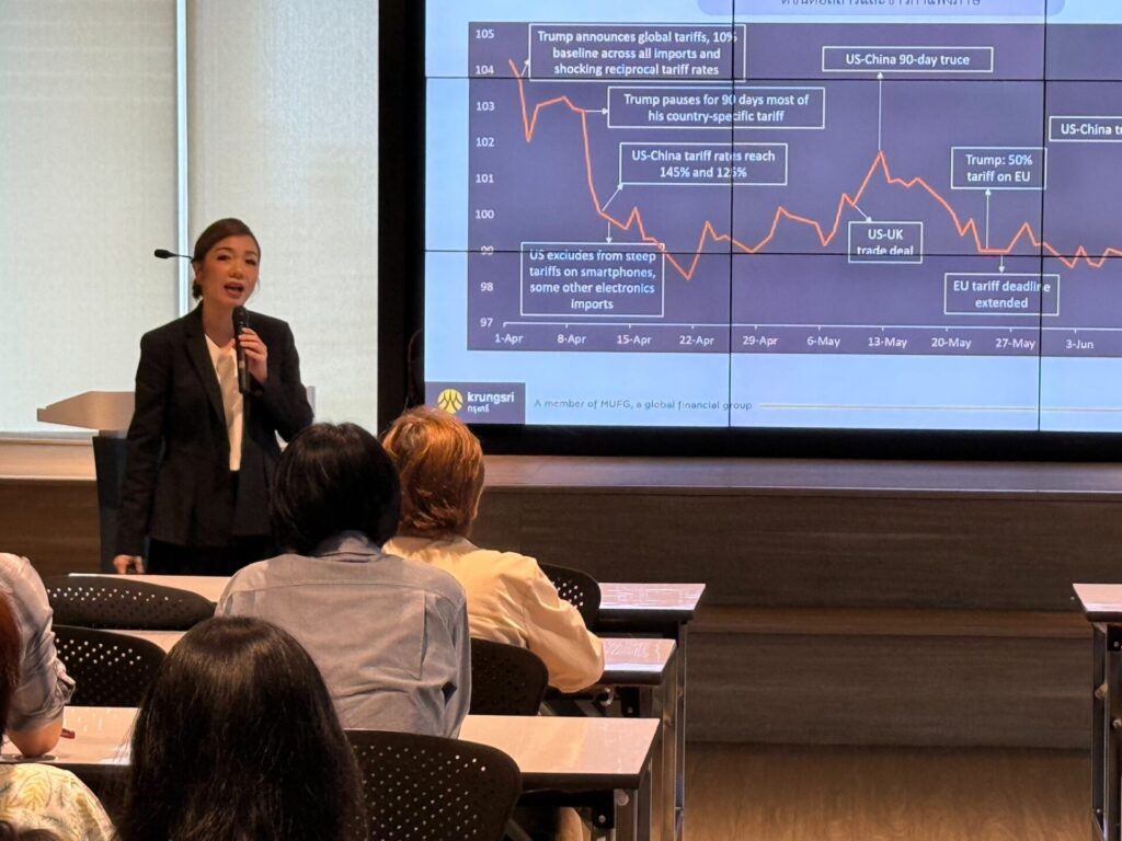 นอกจากนี้ กรุงศรี โกลบอลมาร์เก็ตส์ ยังได้ให้ข้อมูลภาพรวมของสถานการณ์อัตราแลกเปลี่ยนและอัตราดอกเบี้ยในช่วงครึ่งหลังของปี 2568 ดังนี้ นโยบายกำแพงภาษีศุลกากรของประธานาธิบดีทรัมป์กดดันค่าเงินดอลลาร์อ่อนลง เนื่องจากวัฏจักรเศรษฐกิจสหรัฐฯ ที่ชะลอตัวจะเอื้อให้ธนาคารกลางสหรัฐฯ(เฟด) ลดดอกเบี้ยลงต่อในระยะข้างหน้า อีกทั้งความกังวลของตลาดเกี่ยวกับสถานะการคลังสหรัฐฯ ชัดเจนมากขึ้น รวมถึงผู้ค้าสำคัญของสหรัฐฯ มีเวลาที่จะเตรียมตัวตั้งรับด้วยการสนับสนุนเศรษฐกิจในประเทศเพื่อชดเชยผลกระทบจากสงครามการค้า แม้ในกรณีที่ความตึงเครียดด้านการค้าคลี่คลายลง การฟื้นตัวของเงินดอลลาร์จะถูกจำกัดด้วยความเชื่อมั่นที่สูญเสียไป ซึ่งเป็นผลของนโยบายการค้าสุดโต่งและปรับเปลี่ยนไปมา