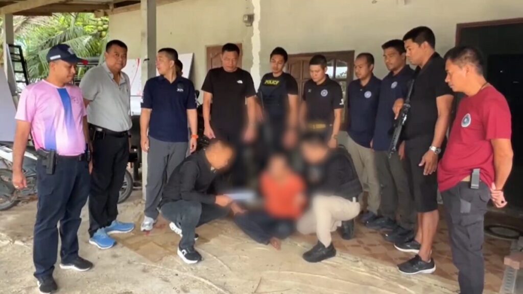 เจ้าหน้าที่บุกจับ นายธวัชชัย อายุ 33 ปี ผู้ต้องหายิง นายบัณฑิต รองพล หรือ กำนันเล้น อายุ 57 ปี กำนัน ต.นาวง อ.ห้วยยอด จ.ตรัง เสียชีวิต เมื่อวันที่ 3 สิงหาคมที่ผ่านมา