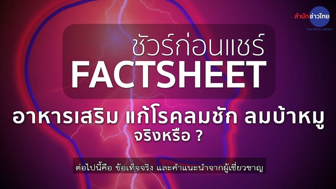 กรุงเทพฯ 28 ก.ค.- บนสังคมออนไลน์แชร์เคล็ดลับห่างไกลโรคลมชัก โรคลมบ้าหมู ด้วยอาหารเสริมสูตรพิเศษที่ช่วยบำรุง คืนสมดุลให้แก่เซลล์สมอง ช่วยซ่อมแซมประสาทและสมองได้ แต่ข้อเท็จจริงเรื่องนี้เป็นอย่างไร ? ติดตามจากศูนย์ชัวร์ก่อนแชร์.-สำนักข่าวไทย