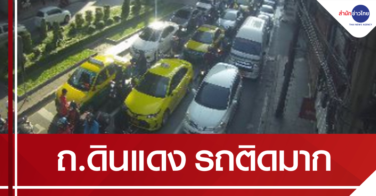 ถนนดินแดง ขาเข้า มุ่งหน้าเข้าใต้ทางด่วนดินแดง การจราจรติดขัดมาก ท้ายแถวชะลอตัวใกล้เคียงแยกพระราม 9