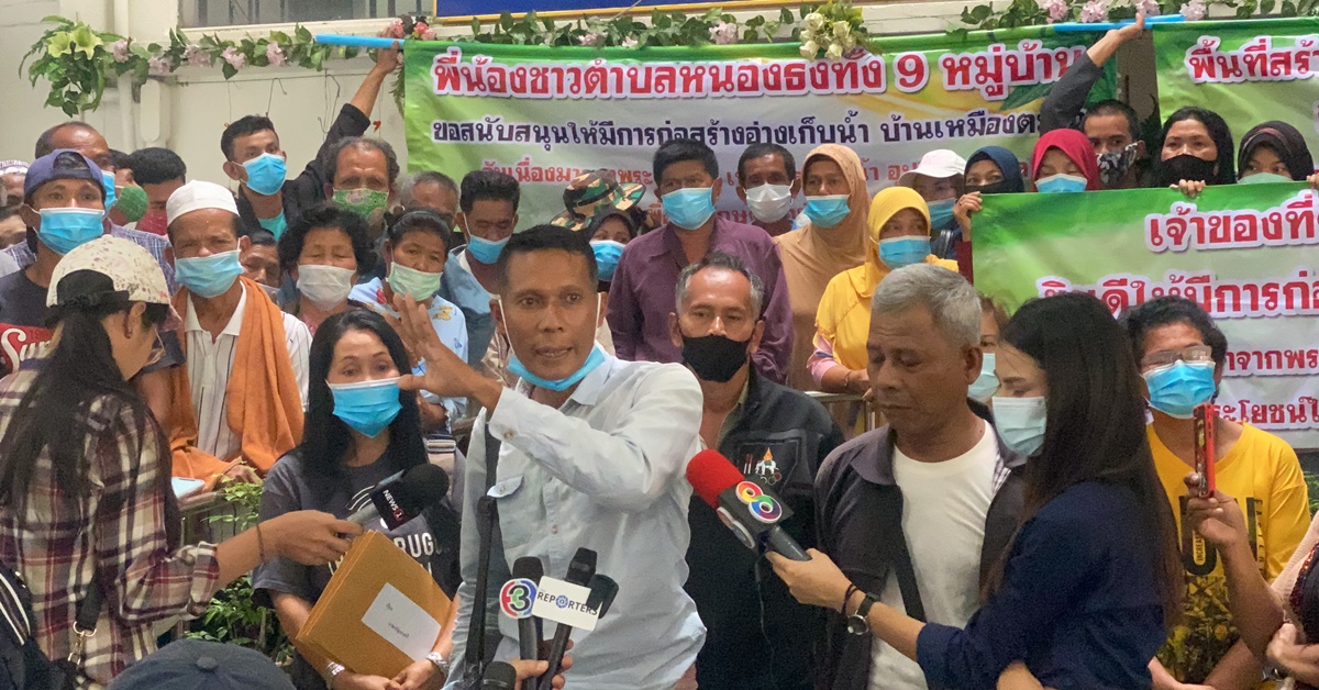 นายสมชาย เหล็มหมาด ตัวแทนเกษตรกร และกลุ่มราษฎร ผู้สนับสนุนโครงการก่อสร้างอ่างเก็บน้ำเหมืองตะกั่ว จาก หมู่ 2 ต.หนองธง อ.ป่าบอน จ.พัทลุง พร้อมด้วยเกษตรกร ประมาณ 200 คน เดินทางมาจากจ.พัทลุง เพื่อยื่นหนังสือที่ศูนย์รับเรื่องราวร้องทุกข์ของรัฐบาล ถึงพล.อ.ประยุทธ์ จันทร์โอชา นายกรัฐมนตรี และรัฐมนตรีว่าการกระทรวงกลาโหม เพื่อขอสนับสนุนโครงการก่อสร้างอ่างเก็บน้ำเหมืองตะกั่ว ผ่าน นายสุภรณ์ อัตถาวงศ์ ผู้ช่วยรัฐมนตรีประจำสำนักนายกรัฐมนตรี