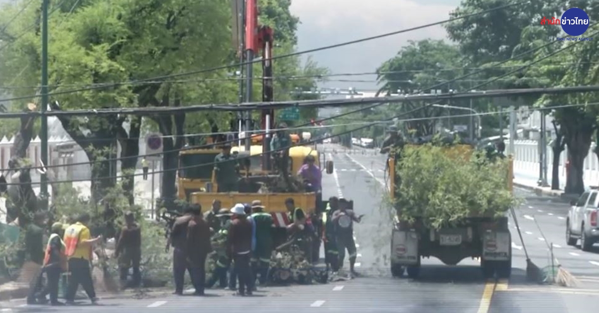 ขณะนี้เจ้าหน้าที่การไฟฟ้านครหลวง กำลังเร่งรื้อถอนซากต้นไม้และเสาไฟฟ้าเดิมออก เพื่อวางเสาและเดินสายไฟฟ้าใหม่ เบื้องต้นประเมินว่าจะแล้วเสร็จพร้อมเปิดการจราจรได้อีกครั้งในเช้าวันพรุ่งนี้ (6 ก.ย.) ทั้งนี้ เจ้าหน้าที่ได้ตัดกระแสไฟฟ้าในบริเวณดังกล่าว ทำให้พื้นที่บางส่วนของสนามเสือป่าไม่มีไฟฟ้าใช้ชั่วคราว. – สำนักข่าวไทย