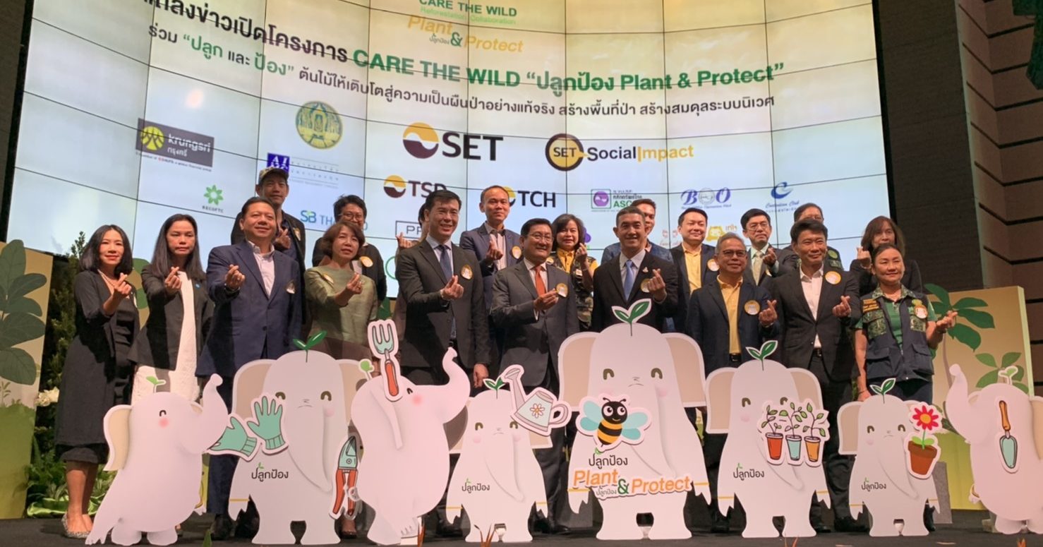 นายภากร ปีตธวัชชัย กรรมการและผู้จัดการ ตลาดหลักทรัพย์แห่งประเทศไทย กล่าวว่า ตลาดหลักทรัพย์ฯ พัฒนาแพลตฟอร์ม “SET Social Impact” ส่งเสริมการดูแลสิ่งแวดล้อม โดยริเริ่มโครงการ Care the Wild “ปลูกป้อง Plant & Protect” ถือเป็นแพลตฟอร์มความร่วมมือ (Collaboration Platform) ให้เกิดการพัฒนาอย่างยั่งยืนในเรื่องการดูแลสิ่งแวดล้อมด้วยการเพิ่มพื้นที่ป่า โดยมีกลไกการดำเนินงานด้วยการระดมทุนในการปลูกต้นไม้ใหม่ ปลูกต้นไม้เสริมและส่งเสริมการดูแลต้นไม้ ร่วมกับภาคีองค์กรเครือข่ายทั้งภาครัฐและเอกชน มีสัญลักษณ์ช้างรักษ์ป่า “พี่ปลูกป้อง”เชิญชวนทุกภาคส่วนร่วมเรียนรู้เรื่องระบบนิเวศ พืช สัตว์ สิ่งแวดล้อม และร่วมระดมทุน “ปลูก” ต้นไม้ รวมทั้งเน้นการร่วมดูแลต้นไม้ที่ปลูกให้เติบโตบนหลักการธรรมาภิบาล จนกลายเป็นผืนป่าอย่างแท้จริง ภายใต้แนวคิด “ป้อง” กล่าวคือ ผู้ระดมทุนปลูก ร่วมติดตามการเติบโตของต้นไม้ การทำงานของชุมชน การมีส่วนร่วมในการขยายผลเพื่อพัฒนาชุมชน และร่วมดูแลเอาใจใส่ไม้ปลูกให้เติบโตเป็นส่วนสำคัญของการขยายแนวผืนป่าของประเทศ ผ่าน Application “Care the Wild”