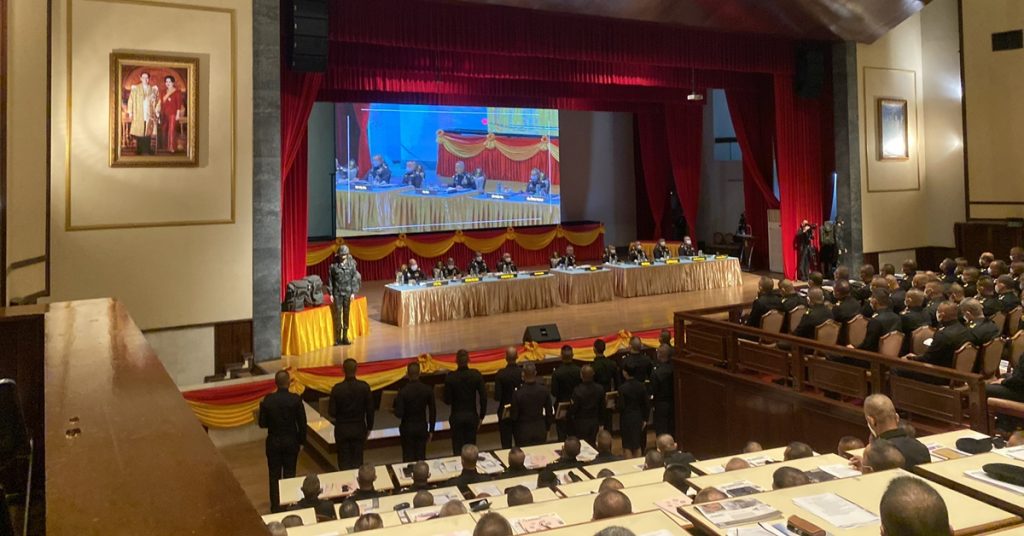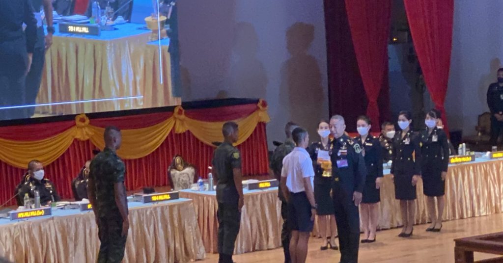 ผู้สื่อข่าวรายงานว่า เจ้าหน้าที่ทหารกองบัญชาการกองทัพบก ได้ขอให้ผู้บังคับหน่วยระดับผู้บังคับกองพันขึ้นไปทั่วประเทศ ประมาณ 700 คนนำโทรศัพท์มือถือ วางไว้ที่โต๊ะหน้าประตูทางเข้า หอประชุมกิตติขจร ตามมาตรารักษาความปลอดภัยด้านข้อมูลข่าวสาร เพื่อป้องกันข้อมูลรั้วและมีมาตรการตรวจคัดกรองโรคและใส่หน้ากากอนามัยทุกคนก่อนเข้าประชุมด้วย.-สำนักข่าวไทย