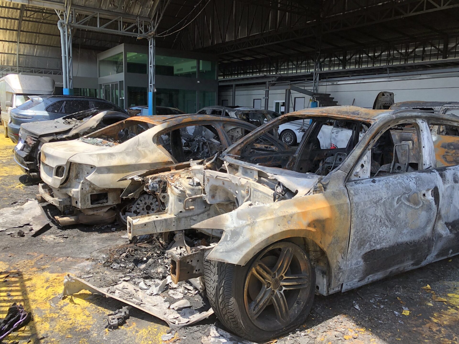 นายอาสซาน เจ้าของรถเบนซ์ E300 รุ่นไฮบริด ชาวอิหร่าน ที่รถถูกเพลิงไหม้ บอกว่า ได้รับแจ้งจากทางอู่เมื่อคืนนี้ว่า รถถูกเพลิงไหม้ จึงรีบมาดู เบื้องต้นทางอู่แจ้งว่า ได้ทำประกันภัยไว้ จะชดใช้ค่าเสียหายให้ทั้งหมด คันไหนที่ซ่อมได้จะซ่อมให้ แต่คันไหนเสียหายจะชดใช้เป็นเงินแทน โดยมีความกังวลเล็กน้อย เนื่องจากรถของตนเป็นระบบไฟฟ้า แม้จะไม่ถูกเพลิงไหม้ทั้งคัน แต่เมื่อคืนโดนระบบดับเพลิงและฉีดน้ำเข้าไป จึงไม่รู้ว่ายังสามารถซ่อมได้หรือไม่ ยังเคราะห์ดีที่เมื่อวานนำปอร์เช่ราคา 6 ล้านที่นำมาซ่อมไว้ และซ่อมเสร็จออกไปก่อน