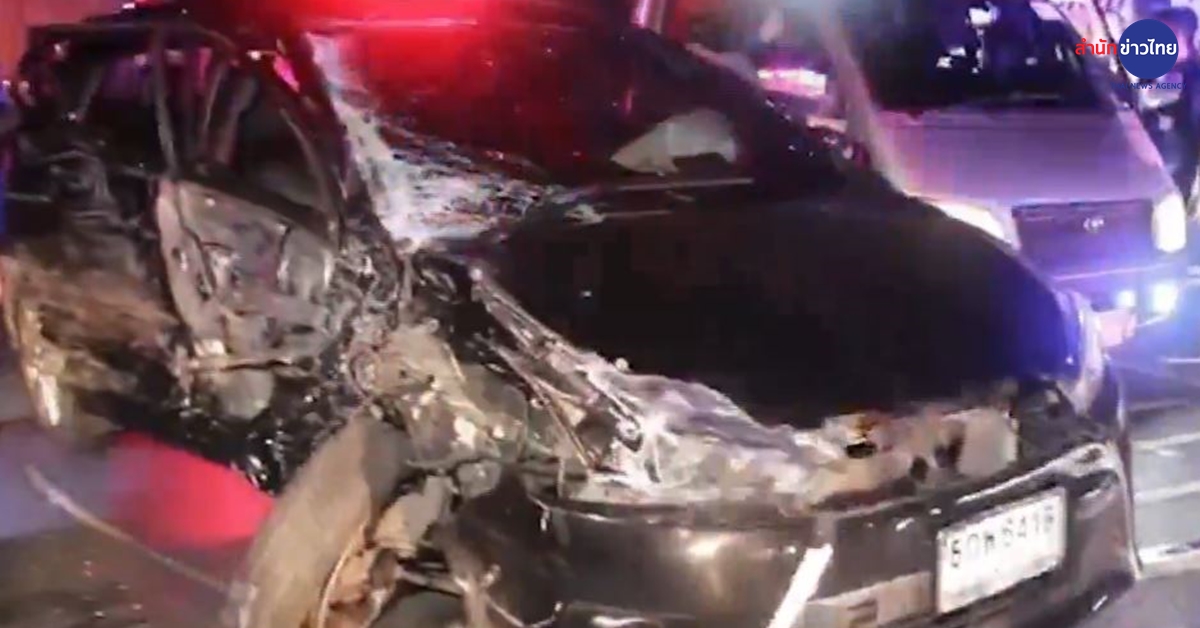 จุดเกิดเหตุพบรถเก๋งสีดำ ทะเบียน 5 กพ 6419 กรุงเทพมหานคร สภาพหน้ารถพังเสียหาย ล้อหน้าขวาบิดเบี้ยว ประตูด้านคนขับพังยุบจนถึงประตูหลัง ส่วนรถอีกคันอยู่ห่างออกไปประมาณ 20 เมตร เป็นรถแท็กซี่ ทะเบียน ทษ 9197 กรุงเทพมหานคร สภาพด้านหน้ารถพังเสียหาย โดยเฉพาะฝั่งคนขับ ในที่เกิดเหตุมีผู้เสียชีวิต 1 ราย คือ น.ส.ชัญญรัสย์ ปัจฉิมสวัสดิ์ อายุ 17 ปี ซึ่งนั่งมาในรถเก๋งสีดำ