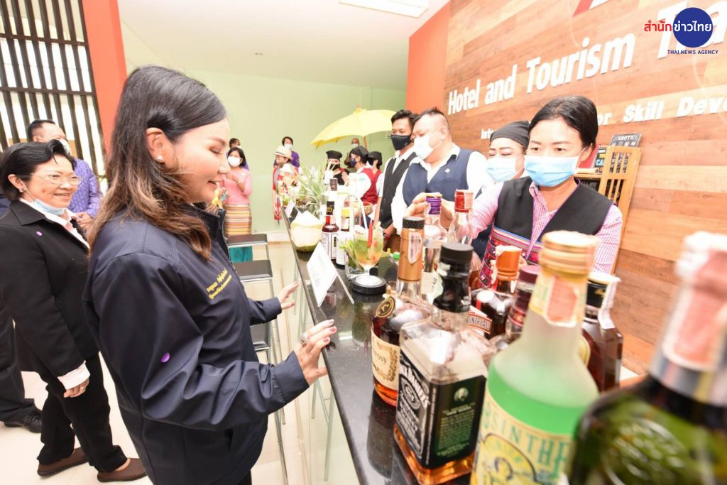 หลังจากนั้น ศาสตราจารย์นฤมล พร้อมคณะ ชมห้องนิทรรศการเทิดพระเกียรติพระบาทสมเด็จพระวชิรเกล้าเจ้าอยู่หัว รัชกาลที่ 10 และเยี่ยมชมการฝึกอบรมของสถาบันพัฒนาฝีมือแรงงานนานาชาติ ประกอบด้วย การฝึกอบรมเทคนิคการขับรถลากจูง เป็นกลุ่มผู้ว่างงานจำนวน 22 คน การขับรถเชิงป้องกันอุบัติเหตุ (สำหรับรถพยาบาลและรถฉุกเฉิน) ผู้เข้าอบรมเป็นพนักงานขับรถพยาบาลและรถฉุกเฉินที่ปฏิบัติงานการแพทย์ฉุกเฉิน รวม 30 คน การฝึกอบรมคานาเป้และเครื่องดื่มสำหรับร้านคาเฟ่ บาร์เทนเดอร์มืออาชีพ บาริสต้ามืออาชีพ และเบเกอร์รี่ฟิวชั่น หลักสูตรละ 25 คน รวม 100 คน นอกจากนี้ยังเยี่ยมชมและให้กำลังใจแก่วิทยากรที่เข้าอบรมในหลักสูตร การพัฒนาศักยภาพวิทยากรเครือข่ายของสถาบันพัฒนาฝีมือแรงงานนานาชาติ อีก 30 คน