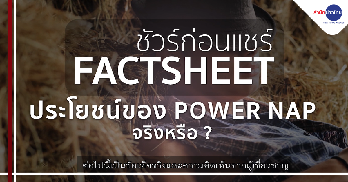 กรุงเทพฯ 14 ก.ย.-บนสังคมออนไลน์แชร์เกี่ยวกับประโยชน์ของ Power Nap หรือการนอนกลางวัน ข้อเท็จจริงเรื่องนี้เป็นอย่างไร ติดตามจากศูนย์ชัวร์ก่อนแชร์.-สำนักข่าวไทย